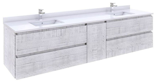 Fresca FCB31-361236RWH-CWH-U Fresca Formosa 84" Wall Hung Double Sink Modern Bathroom Cabinet w/ Top & Sinks in Rustic White