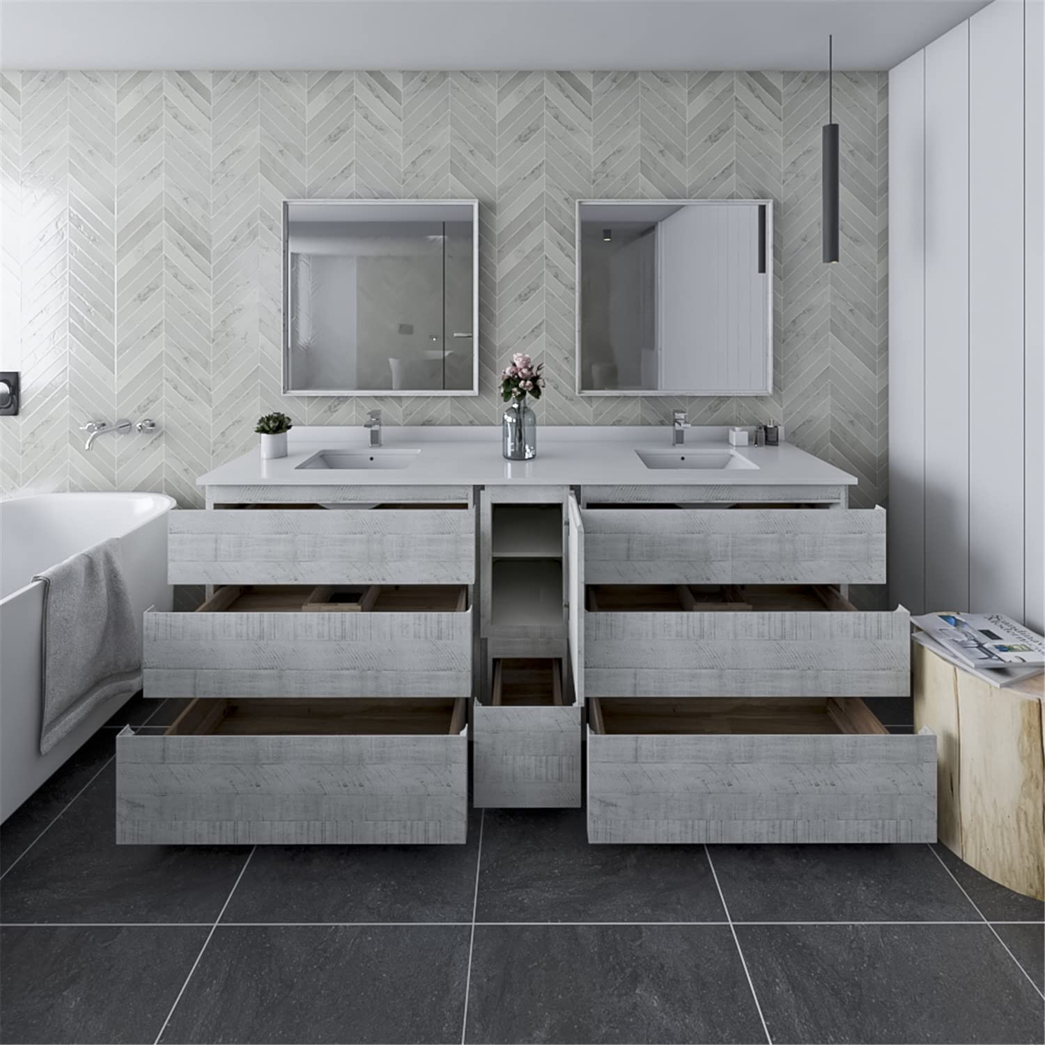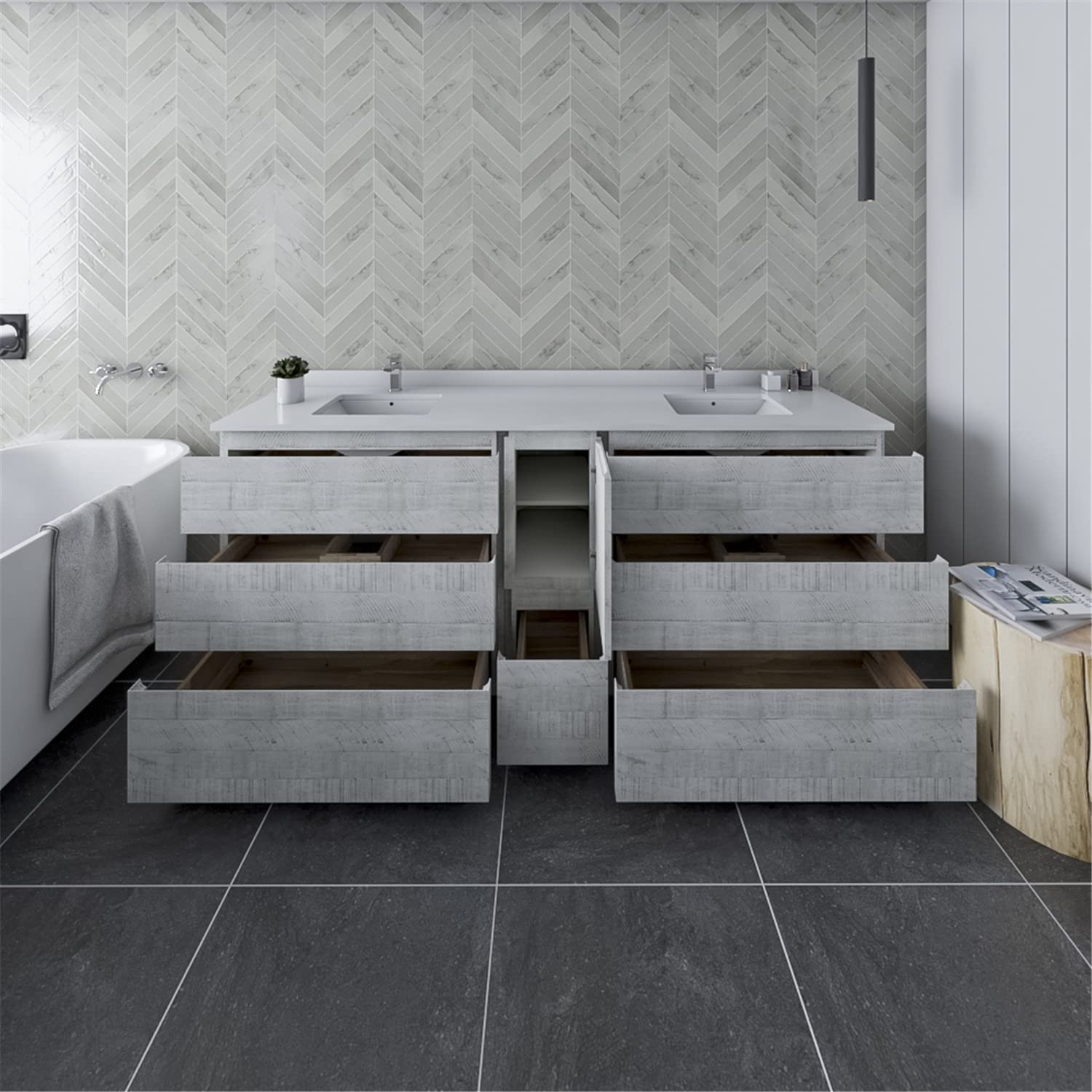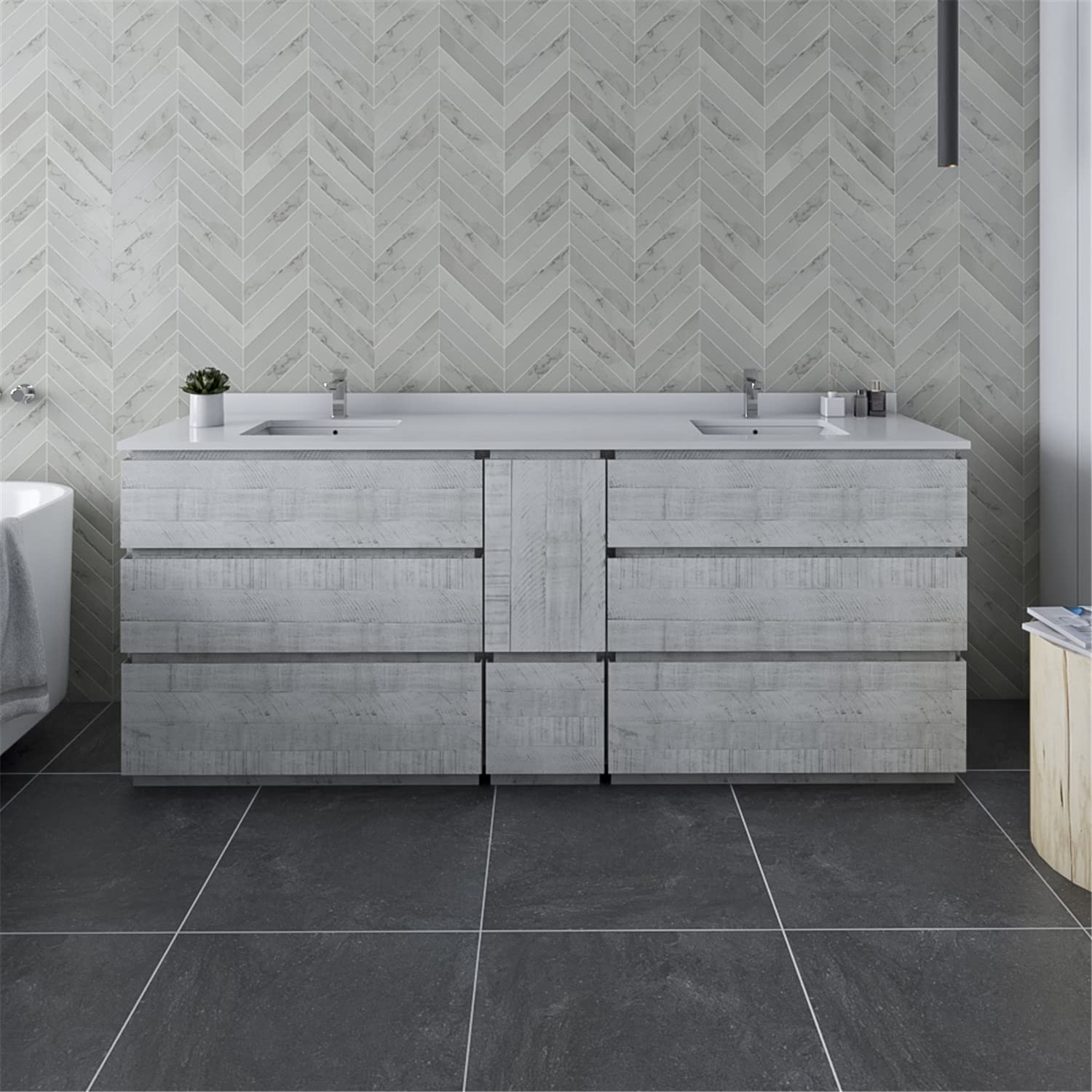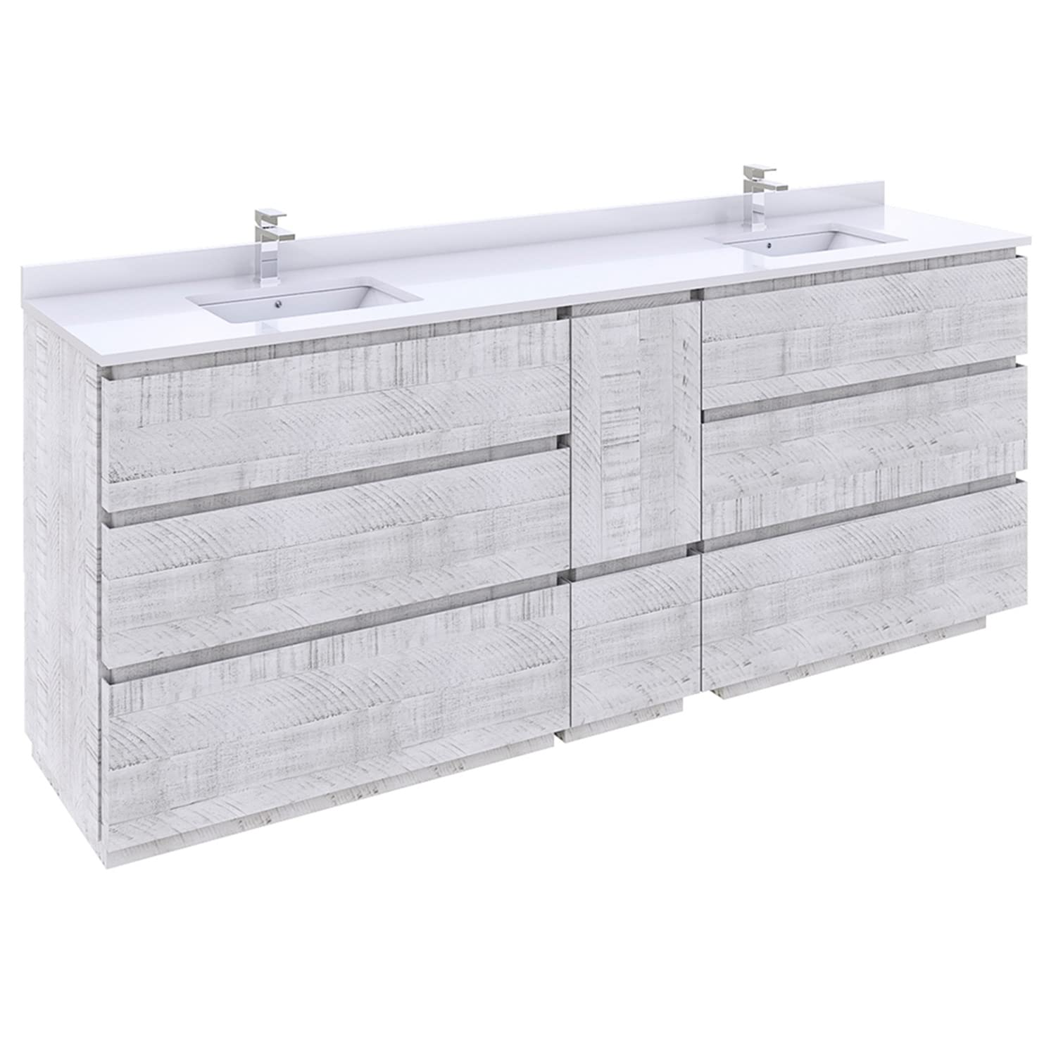 Fresca FCB31-361236RWH-FC-CWH-U Fresca Formosa 84" Floor Standing Double Sink Modern Bathroom Cabinet w/ Top & Sinks in Rustic White