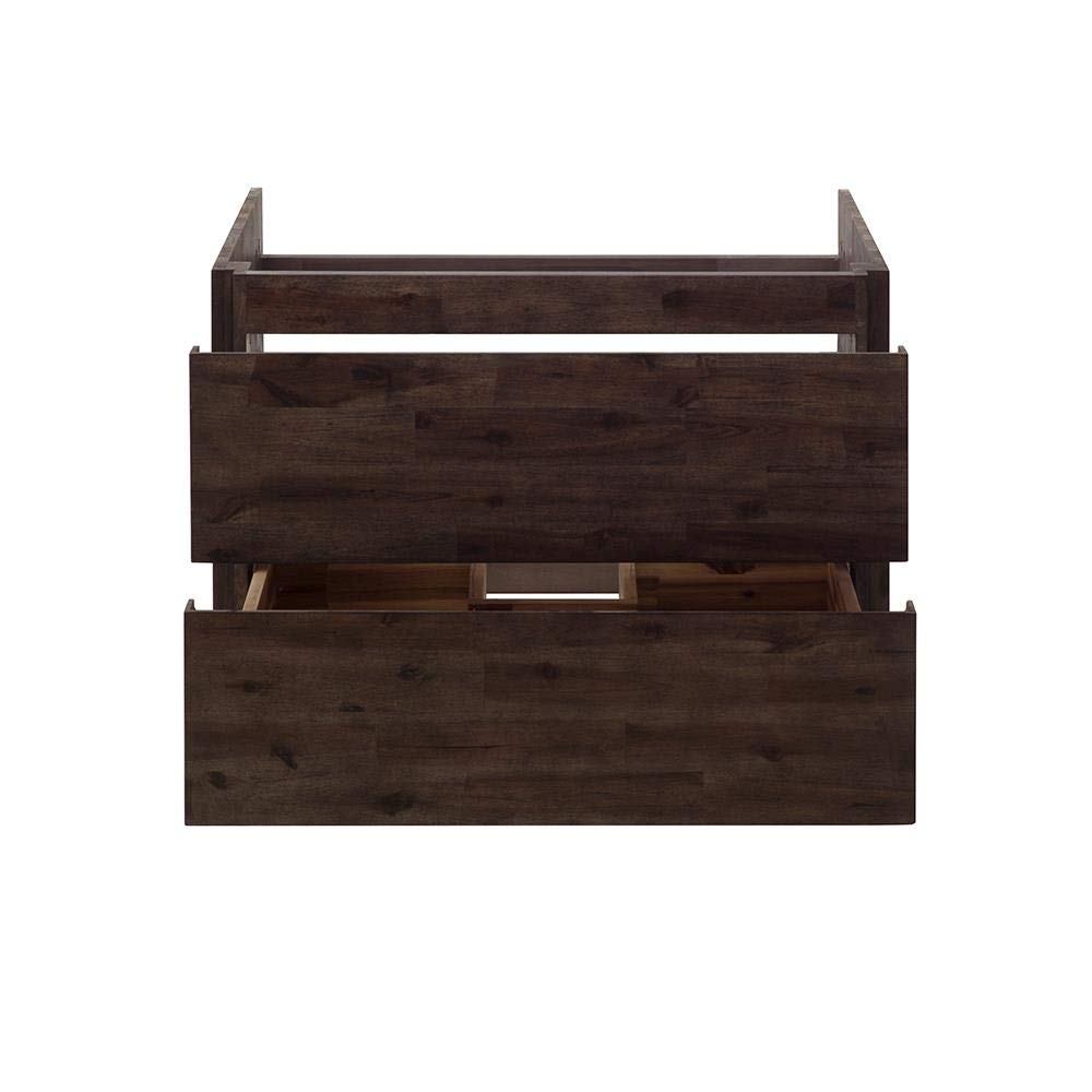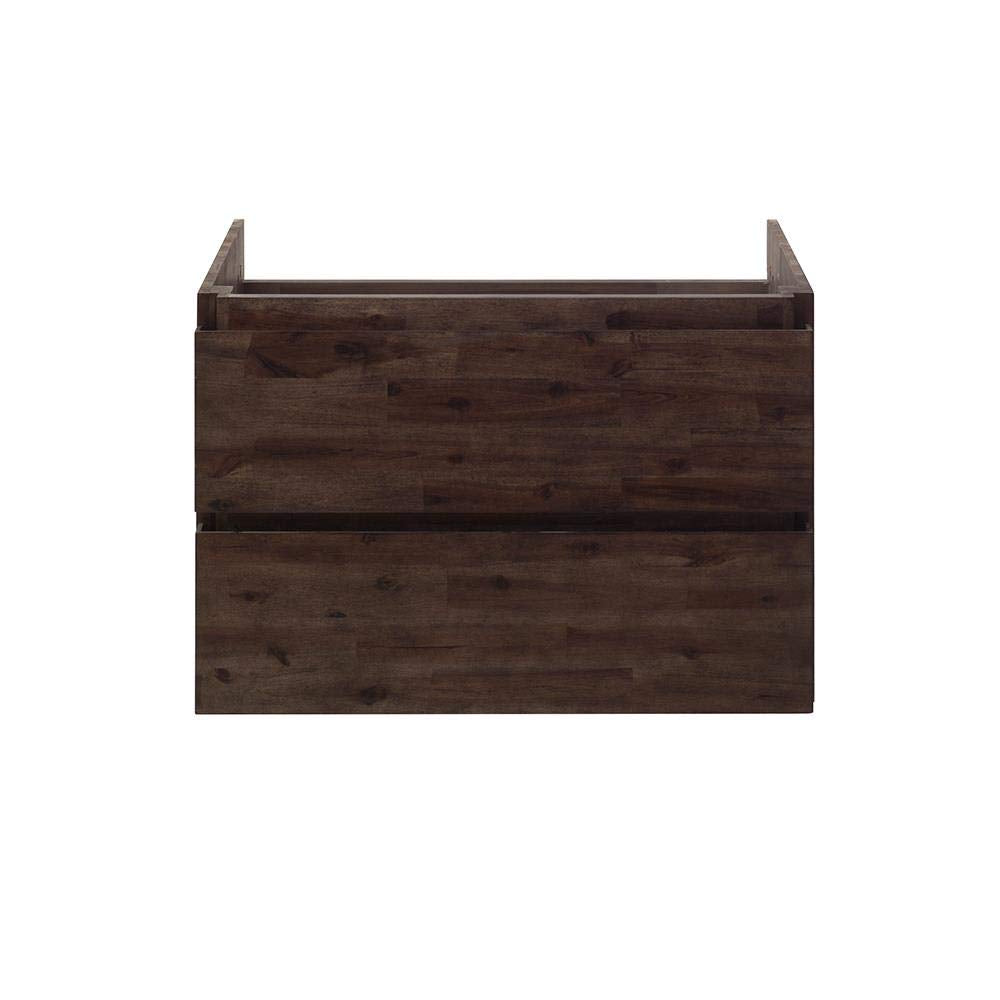 The Fresca Formosa Wall Hung Modern Bathroom Cabinet is superbly crafted of solid Acacia wood, known for its magnificent beauty and durability. It has a warm grey finish with a hint of brown throughout, and a natural grain that will inject luxurious warmth into any space. A masterpiece of elegance and style, this wall-mounted cabinet measures 30 in width. Two solid wood, soft-closing dovetail drawers are perfect for organizing all of your daily essentials. The solid pine drawers are clear coated and feature a mitered, wrap-around design that adds to the superior detailing. Cove routed pulls are carved directly into the drawers keeping the design sharp and sophisticated. The Fresca Formosa Cabinet is available in multiple sizes and styles. It includes installation hardware.