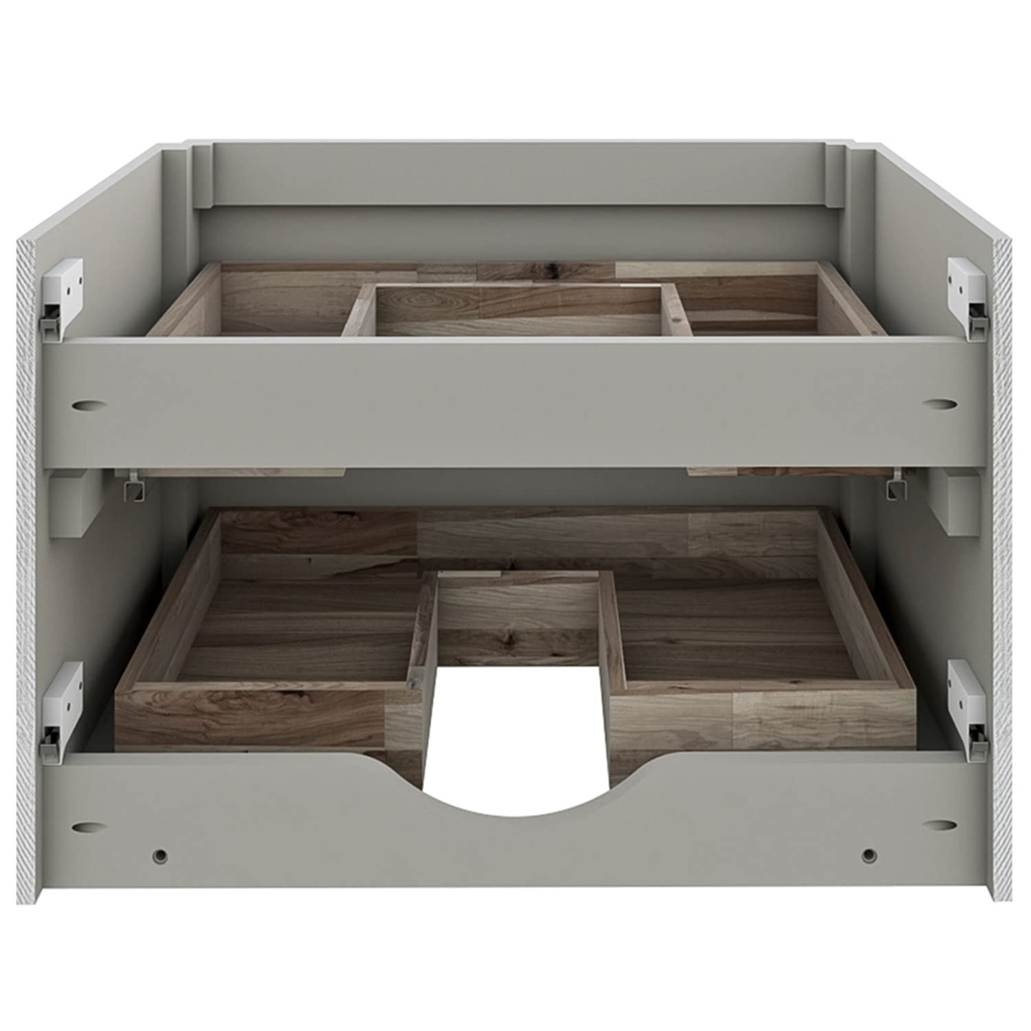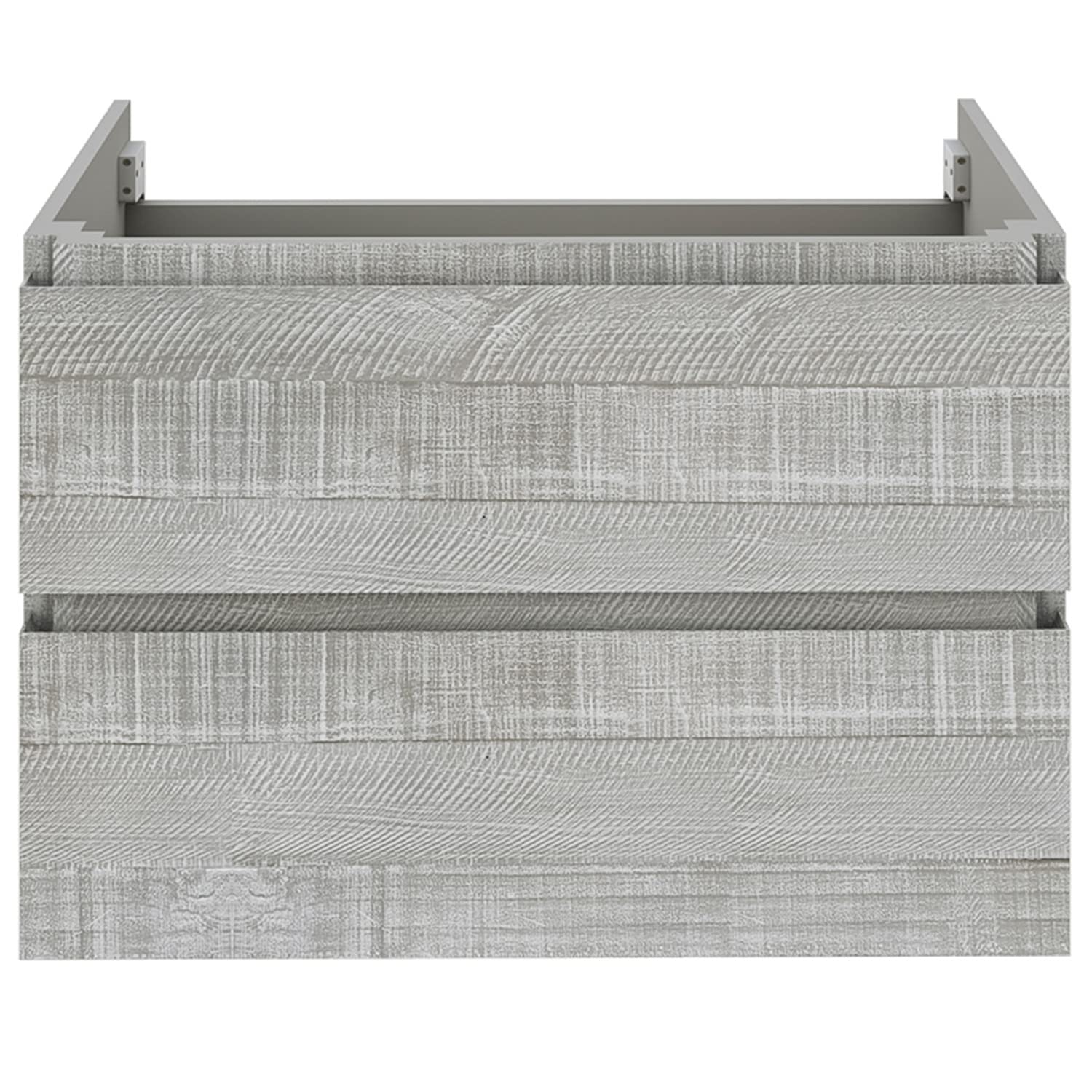 The Fresca Formosa Wall Hung Modern Bathroom Cabinet is superbly crafted of solid Acacia wood, known for its magnificent beauty and durability. It has a warm grey finish with a hint of brown throughout, and a natural grain that will inject luxurious warmth into any space. A masterpiece of elegance and style, this wall-mounted cabinet measures 29 in width. Two solid wood, soft-closing dovetail drawers are perfect for organizing all of your daily essentials. The solid pine drawers are clear coated and feature a mitered, wrap-around design that adds to the superior detailing. Cove routed pulls are carved directly into the drawers keeping the design sharp and sophisticated. The Fresca Formosa Cabinet is available in multiple sizes and styles. It includes installation hardware.