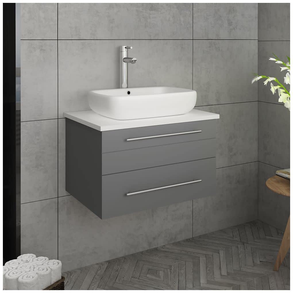 Fresca FCB6124WH-VSL-CWH-V Fresca Lucera 24" White Wall Hung Modern Bathroom Cabinet w/ Top & Vessel Sink