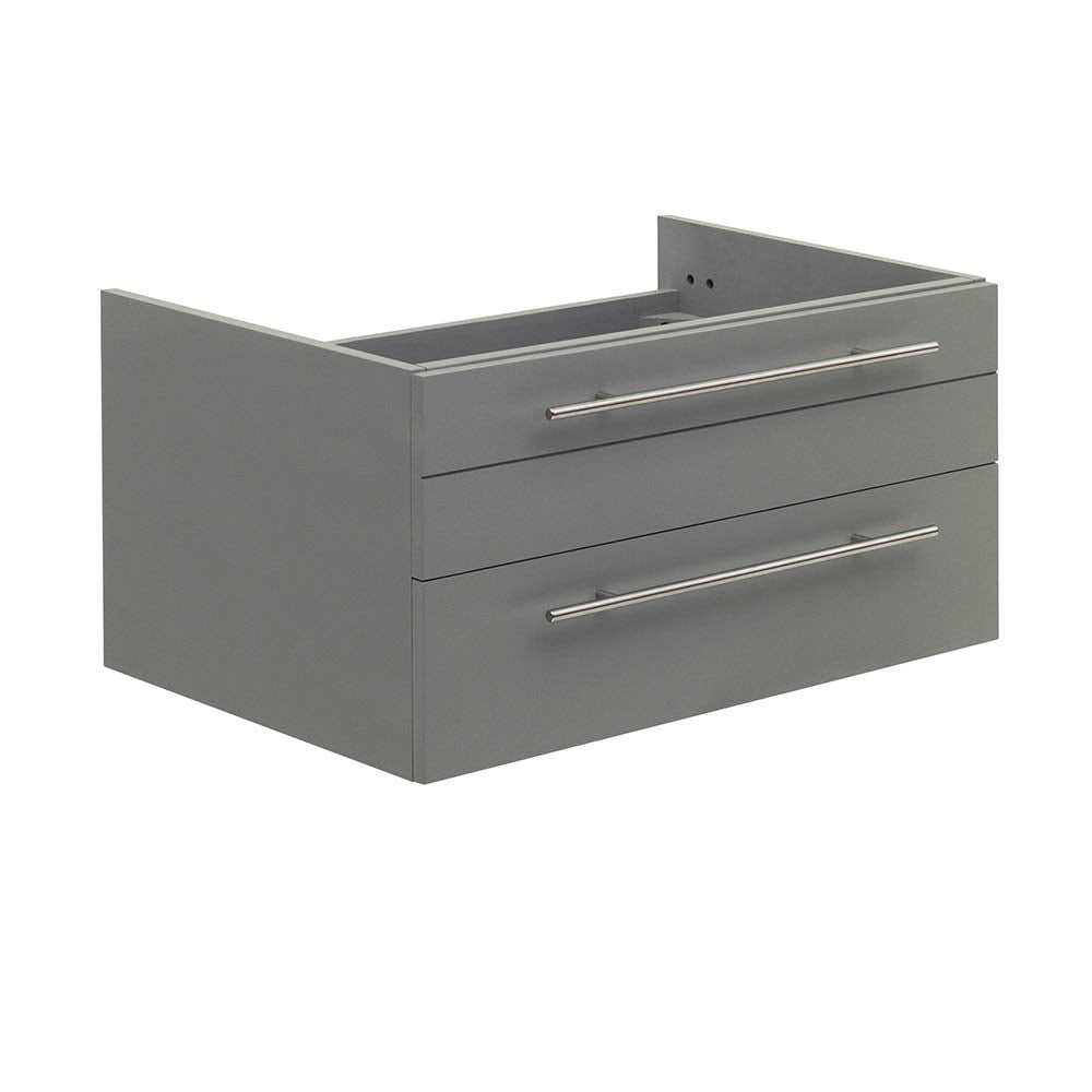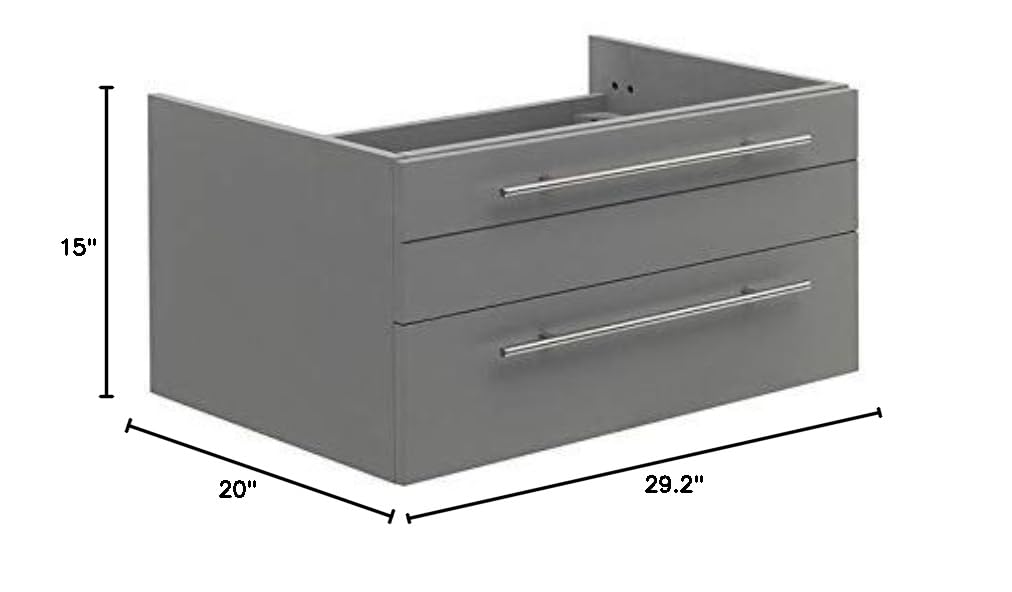 Classically simple with clean lines and an elegant look, this Fresca Lucera Wall Hung Modern Bathroom Cabinet will bring out the best in any bathroom. Measuring 30” in width, this sophisticated cabinet has a soft-closing drawer with a decorative beveled drawer plate design and a slim brushed metal handle. This modern cabinet has a chic painted Gray finish. It includes installation hardware and is available in several sizes and finishes to meet your decorating needs.
