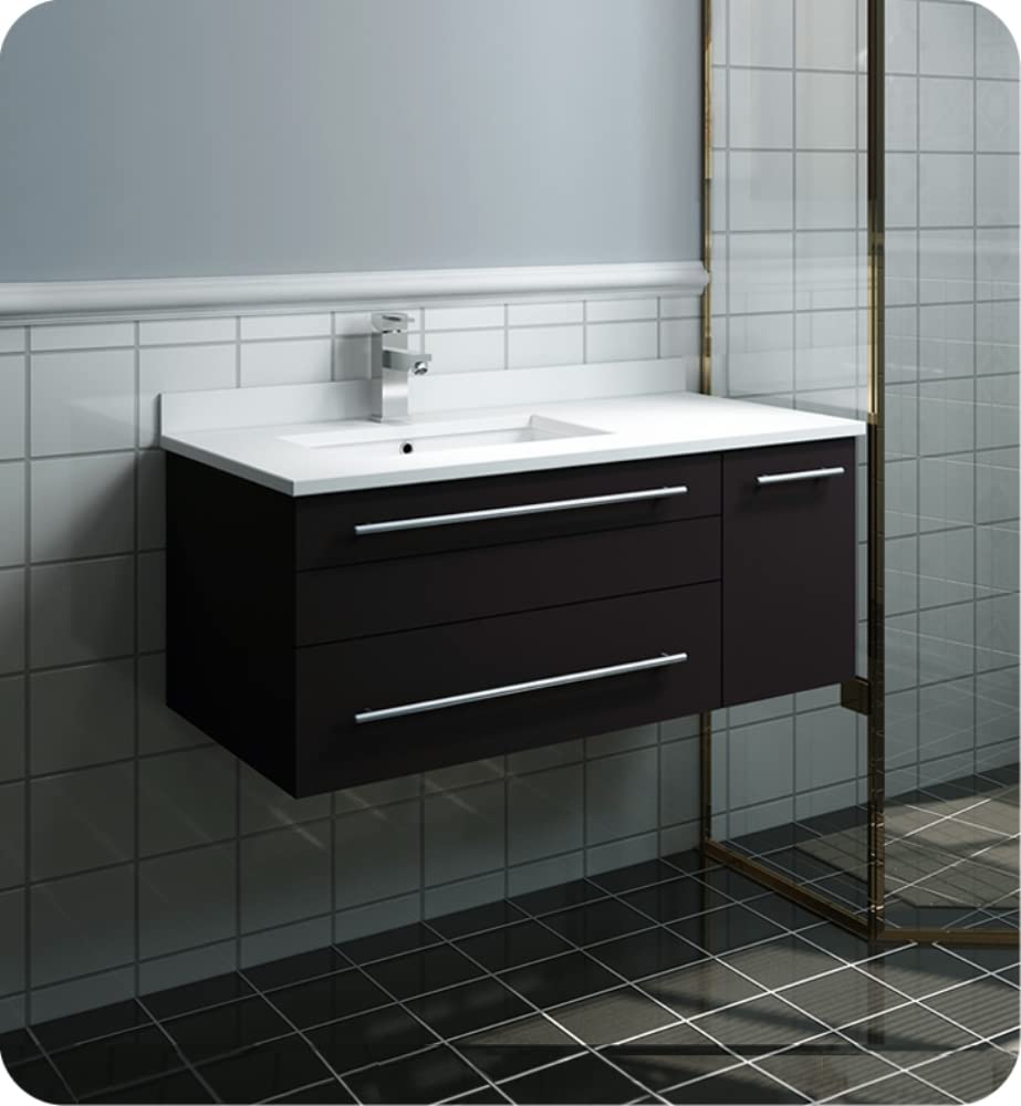 Fresca FCB6136ES-UNS-L-CWH-U Fresca Lucera 36" Espresso Wall Hung Modern Bathroom Cabinet w/ Top & Undermount Sink - Left Version