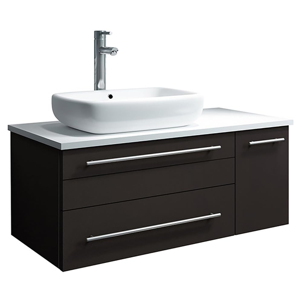 Fresca FCB6136ES-VSL-L-CWH-V Fresca Lucera 36" Espresso Wall Hung Modern Bathroom Cabinet w/ Top & Vessel Sink - Left Version