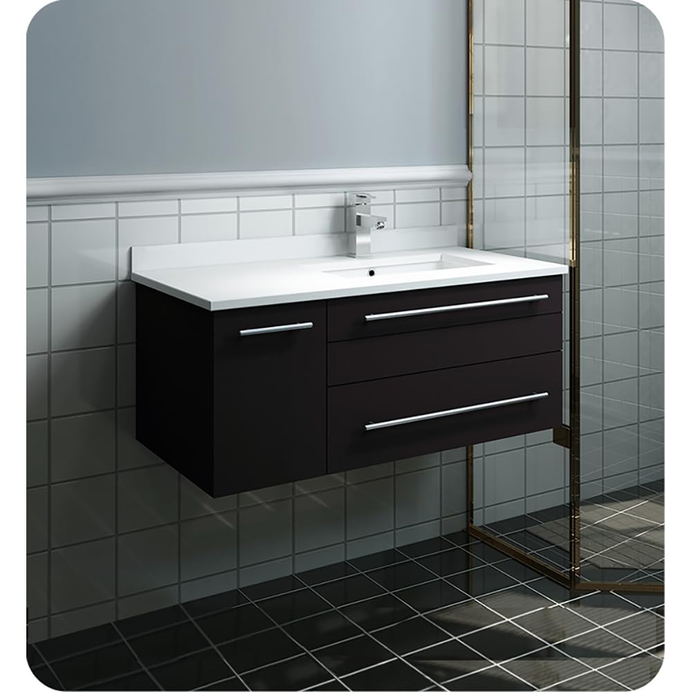 Fresca FCB6136GR-UNS-R-CWH-U Fresca Lucera 36" Gray Wall Hung Modern Bathroom Cabinet w/ Top & Undermount Sink - Right Version