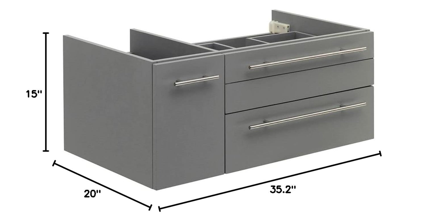Fresca FCB6136GR-VSL-R Fresca Lucera 36" Gray Wall Hung Vessel Sink Modern Bathroom Cabinet - Right Version