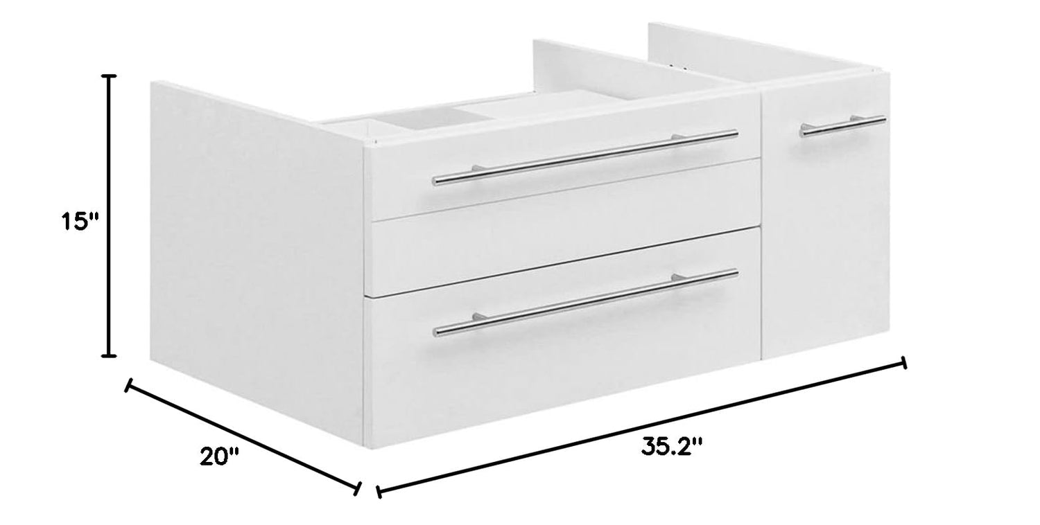 Fresca FCB6136WH-VSL-L Fresca Lucera 36" White Wall Hung Vessel Sink Modern Bathroom Cabinet - Left Version