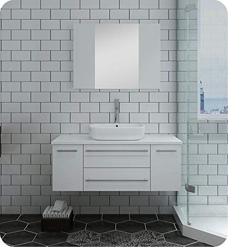 Fresca FCB6142WH-VSL Fresca Lucera 42" White Wall Hung Vessel Sink Modern Bathroom Cabinet
