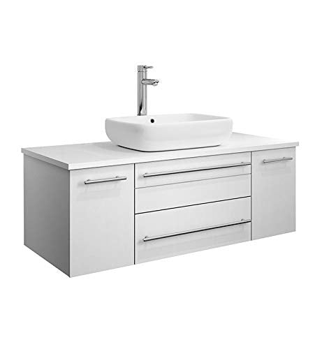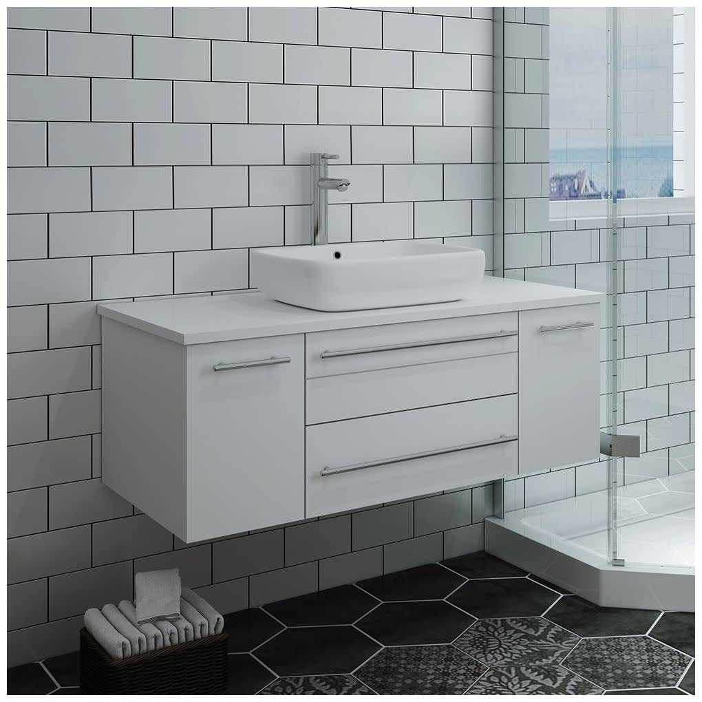 Fresca FCB6142WH-VSL-CWH-V Fresca Lucera 42" White Wall Hung Modern Bathroom Cabinet w/ Top & Vessel Sink