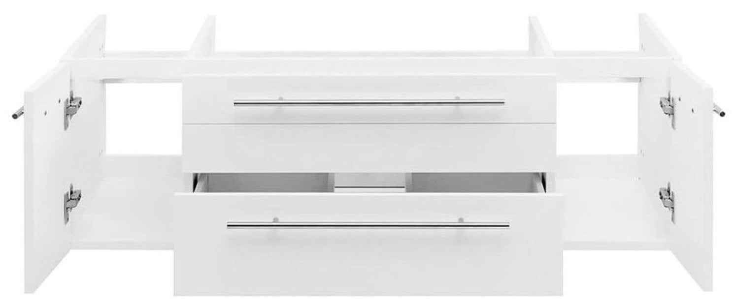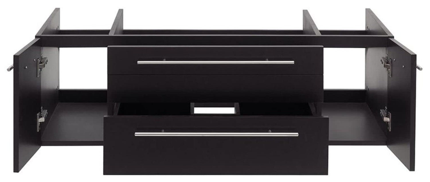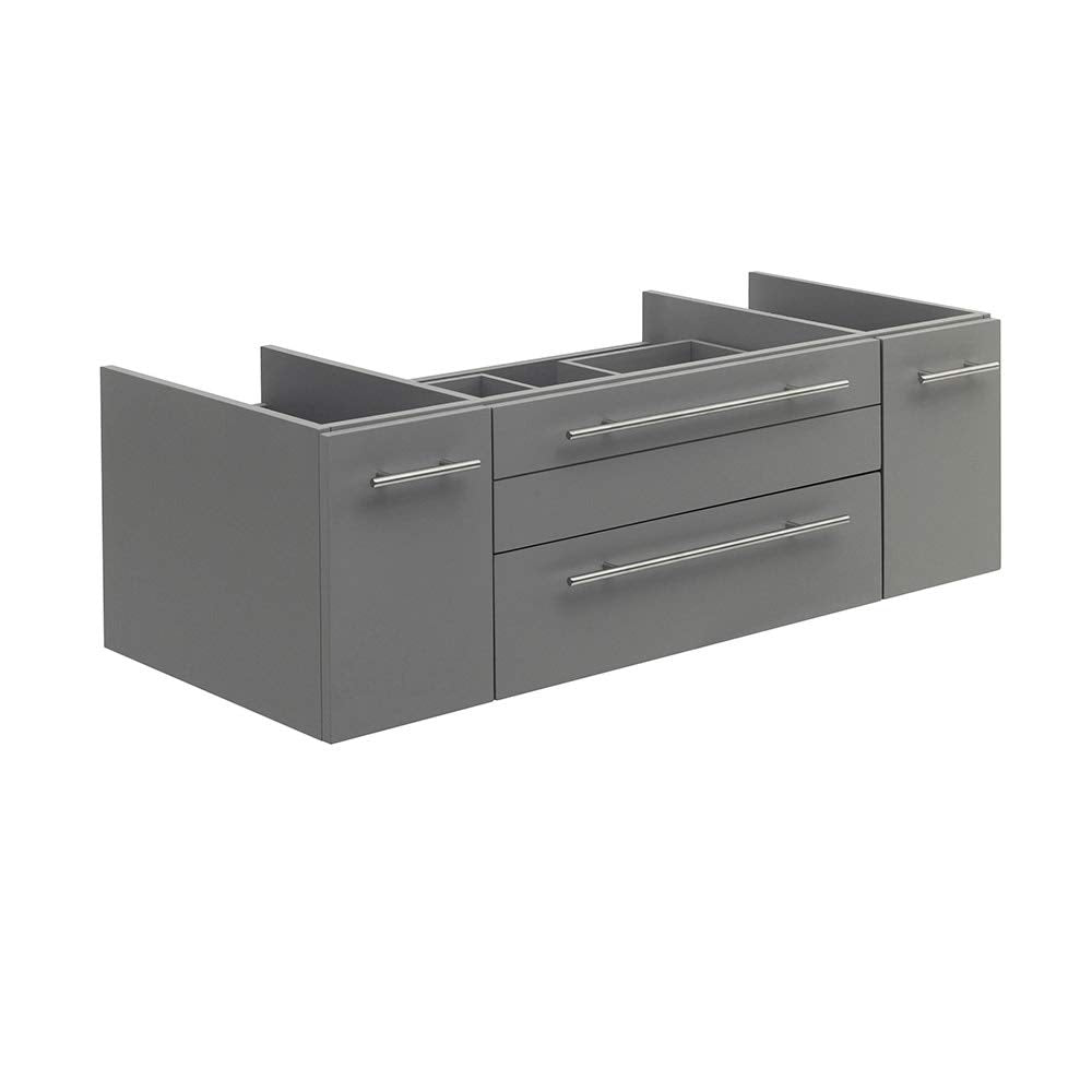 Classically simple with clean lines and an elegant look, this Fresca Lucera Wall Hung Modern Bathroom Cabinet will bring out the best in any bathroom. Measuring 48 in width, this sophisticated cabinet has a well constructed solid wood frame with two roomy storage compartments for holding bathroom essentials and two spacious drawers with a decorative beveled drawer plate design. The doors and drawers are soft-closing and feature slim brushed metal handles. This modern cabinet has a chic painted Gray finish. It includes installation hardware and is available in several sizes and finishes to meet your decorating needs.