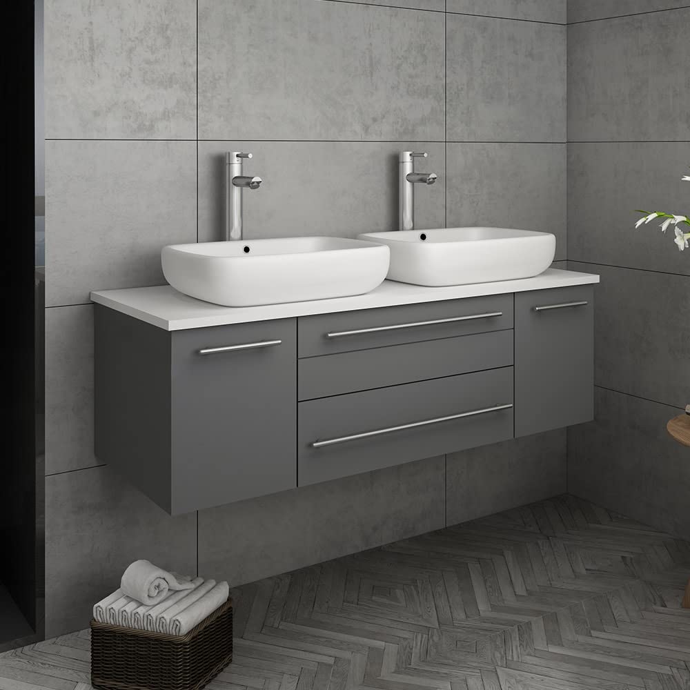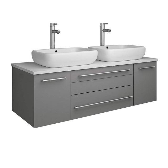 Fresca FCB6148GR-VSL-D-CWH-V Fresca Lucera 48" Gray Wall Hung Modern Bathroom Cabinet w/ Top & Double Vessel Sinks