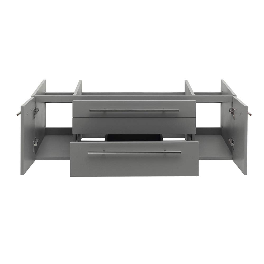 Classically simple with clean lines and an elegant look, this Fresca Lucera Wall Hung Modern Bathroom Cabinet will bring out the best in any bathroom. Measuring 48 in width, this sophisticated cabinet has a well constructed solid wood frame with two roomy storage compartments for holding bathroom essentials and two spacious drawers with a decorative beveled drawer plate design. The doors and drawers are soft-closing and feature slim brushed metal handles. This modern wall hung cabinet has a chic painted White finish. It includes installation hardware and is available in several sizes and finishes to meet your decorating needs.