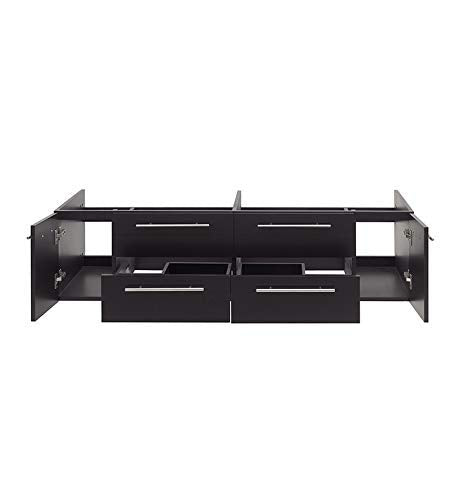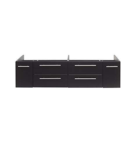 Classically simple with clean lines and an elegant look, this Fresca Lucera Wall Hung Modern Bathroom Cabinet will bring out the best in any bathroom. Measuring 60 in width, this sophisticated cabinet has a well constructed solid wood frame with two roomy storage compartments for holding bathroom essentials and two spacious drawers with a decorative beveled drawer plate design. The doors and drawers are soft-closing and feature slim brushed metal handles. This modern cabinet has a chic painted Espresso finish. It includes installation hardware and is available in several sizes and finishes to meet your decorating needs.