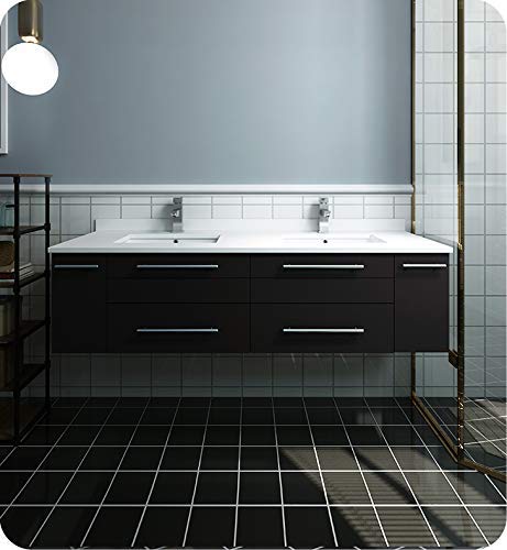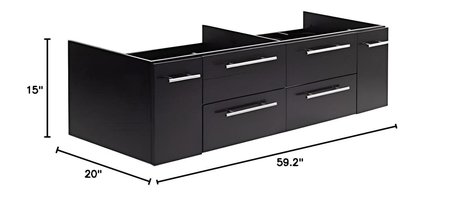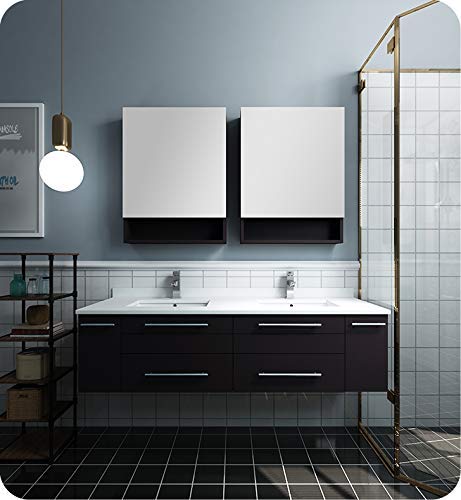 Fresca FCB6160ES-UNS-D Fresca Lucera 60" Espresso Wall Hung Double Undermount Sink Modern Bathroom Cabinet