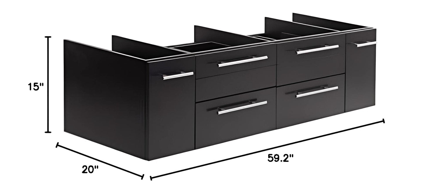 Fresca FCB6160ES-VSL-D Fresca Lucera 60" Espresso Wall Hung Double Vessel Sink Modern Bathroom Cabinet
