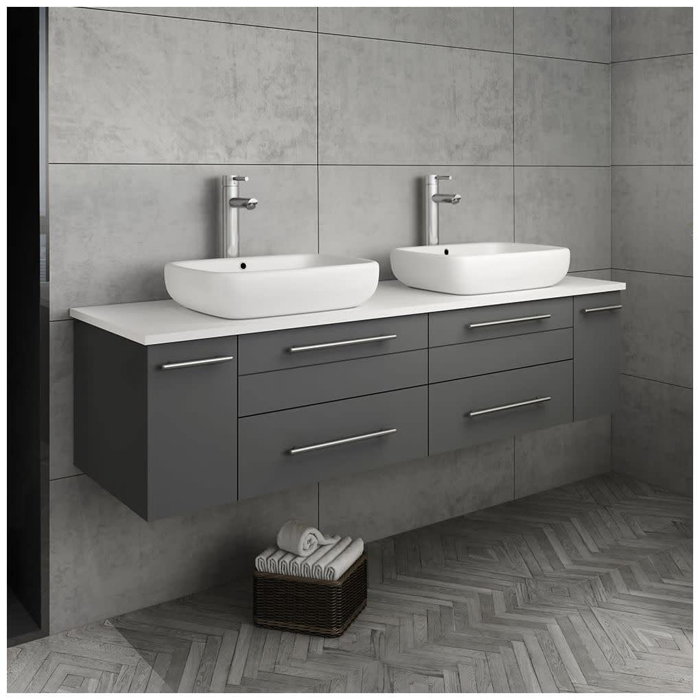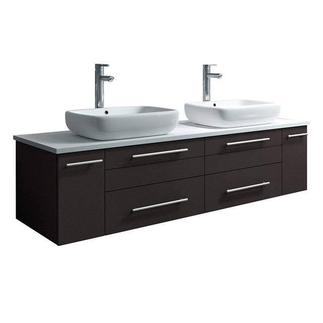 Fresca FCB6160ES-VSL-D-CWH-V Fresca Lucera 60" Espresso Wall Hung Modern Bathroom Cabinet w/ Top & Double Vessel Sinks