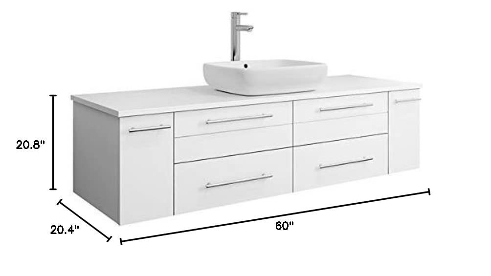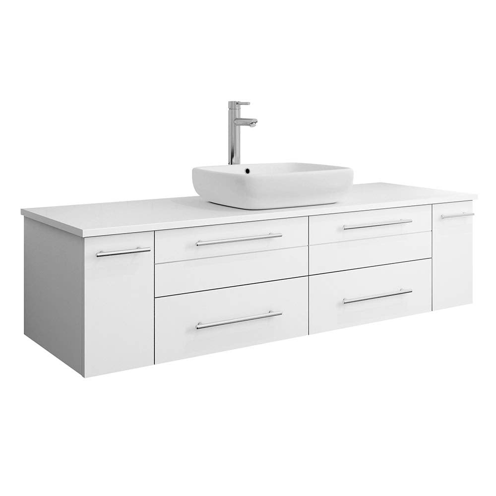 Fresca FCB6160WH-VSL-CWH-V Fresca Lucera 60" White Wall Hung Modern Bathroom Cabinet w/ Top & Single Vessel Sink