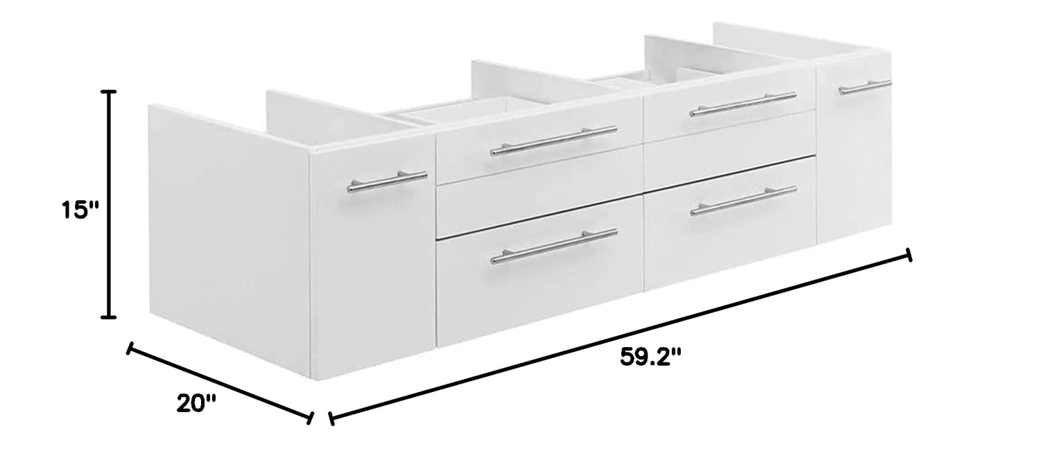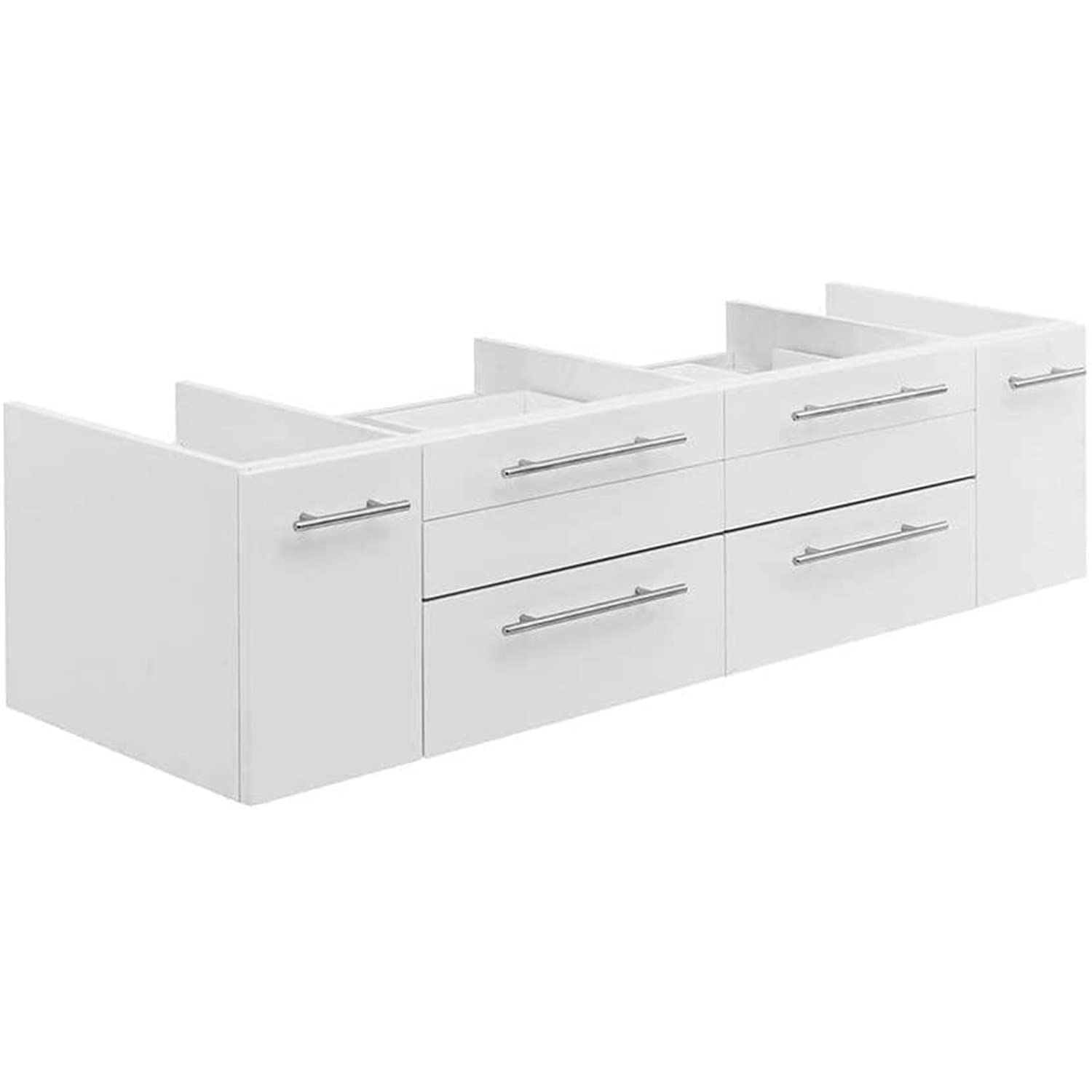 Fresca FCB6160WH-VSL-D Fresca Lucera 60" White Wall Hung Double Vessel Sink Modern Bathroom Cabinet