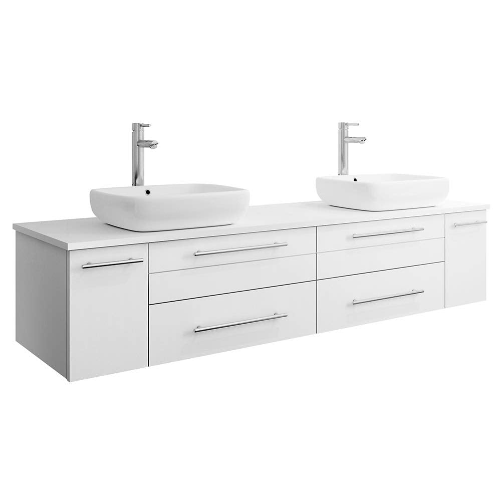 Fresca FCB6172WH-VSL-D-CWH-V Fresca Lucera 72" White Wall Hung Modern Bathroom Cabinet w/ Top & Double Vessel Sinks