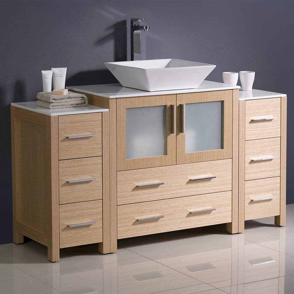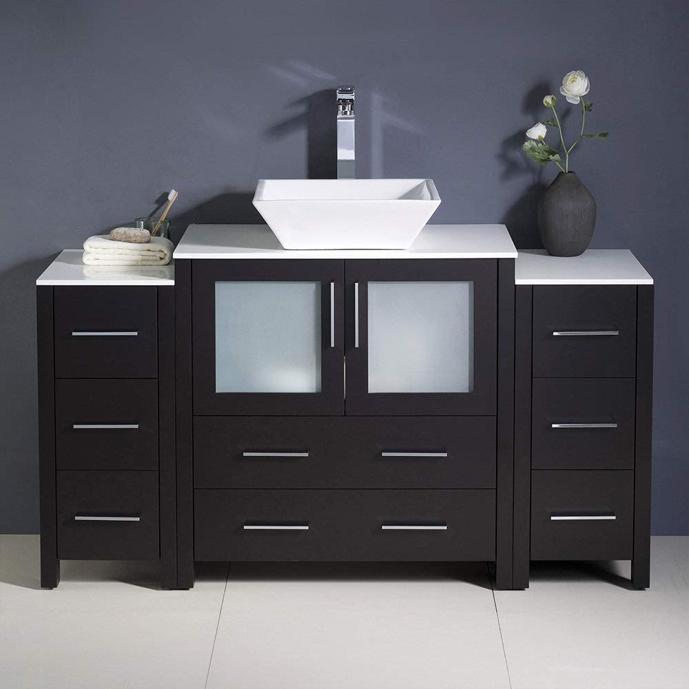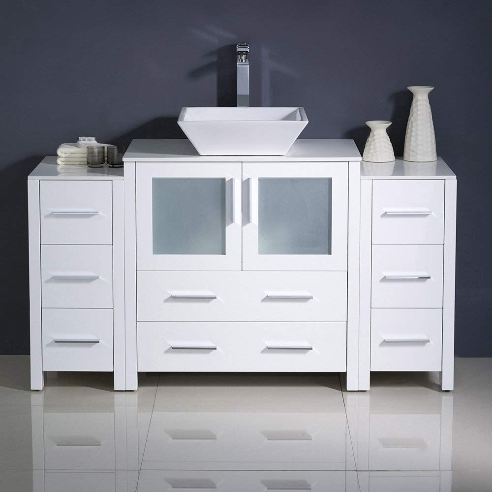 Fresca FCB62-123012WH-CWH-V Fresca Torino 54" White Modern Bathroom Cabinets w/ Top & Vessel Sink