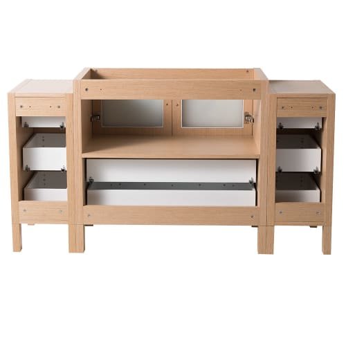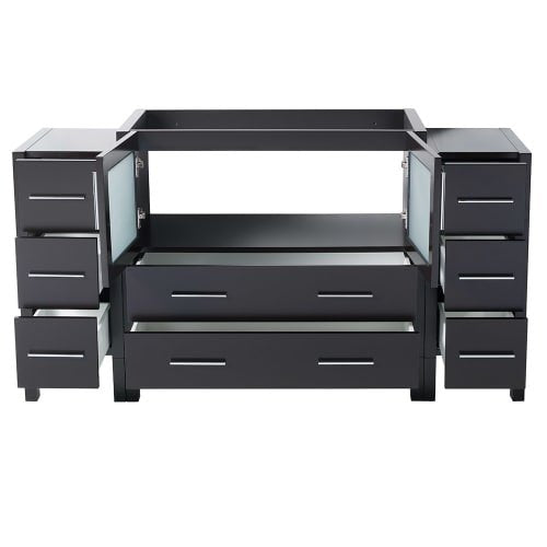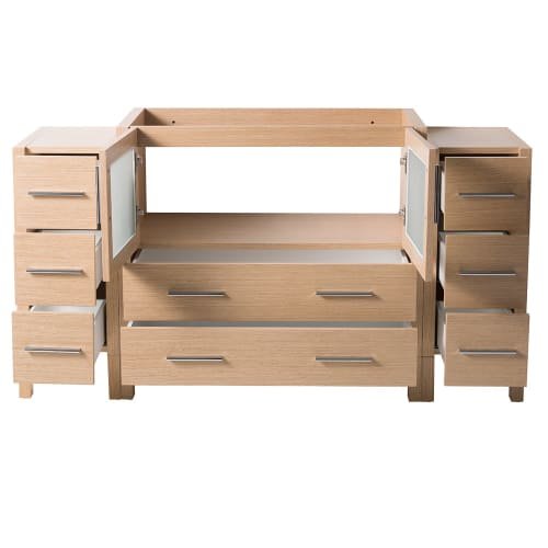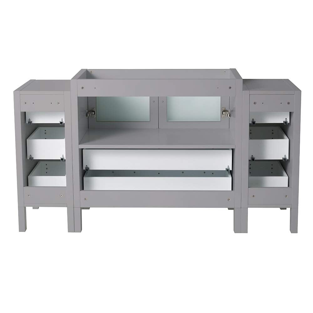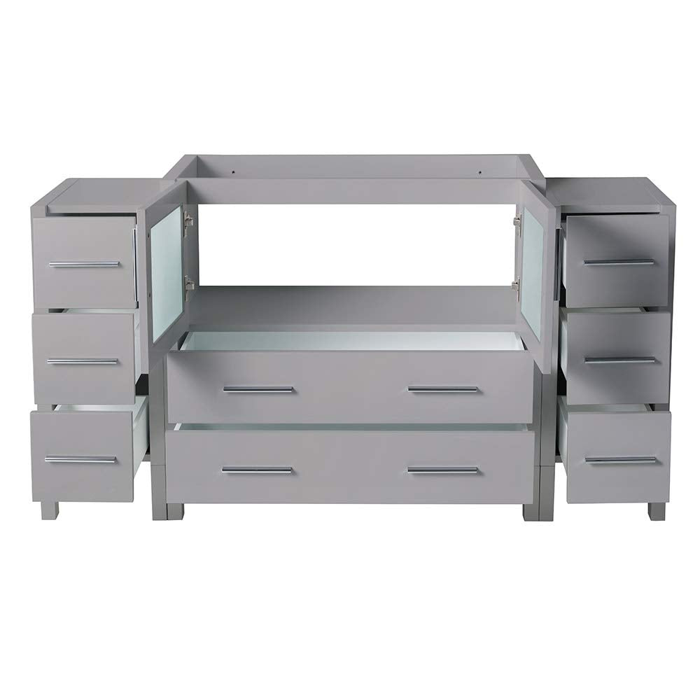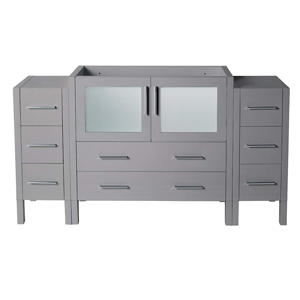 Add a fresh, modern feel to your home with these elegant bathroom cabinets with a clean White finish. With plenty of drawers and a roomy central storage compartment, this stylish combination offers great space to keep bathroom essentials organized. The central unit stands taller than the side units, providing additional visual interest. It features two large soft close drawers and frosted glass panel doors that give this piece a fresh, contemporary feel. The polished chrome pulls are included, adding the perfect finishing touch. Available in the rich finishes of Espresso, Gray Oak, Light Oak or White, the Fresca Torino Modern Bathroom Cabinets are designed to add elegance to any décor. These cabinets measure 60 in width and are available in varies sizes and configurations.
