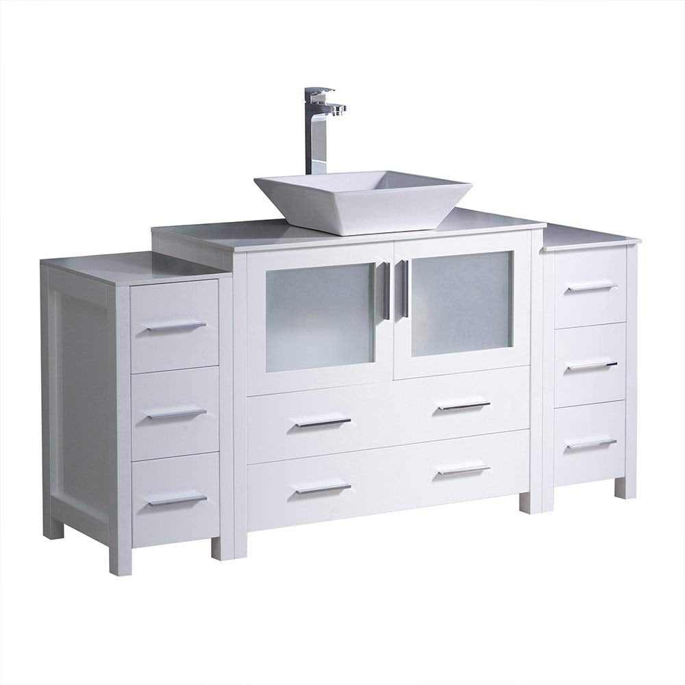 Fresca FCB62-123612WH-CWH-V Fresca Torino 60" White Modern Bathroom Cabinets w/ Top & Vessel Sink
