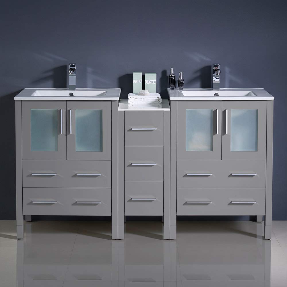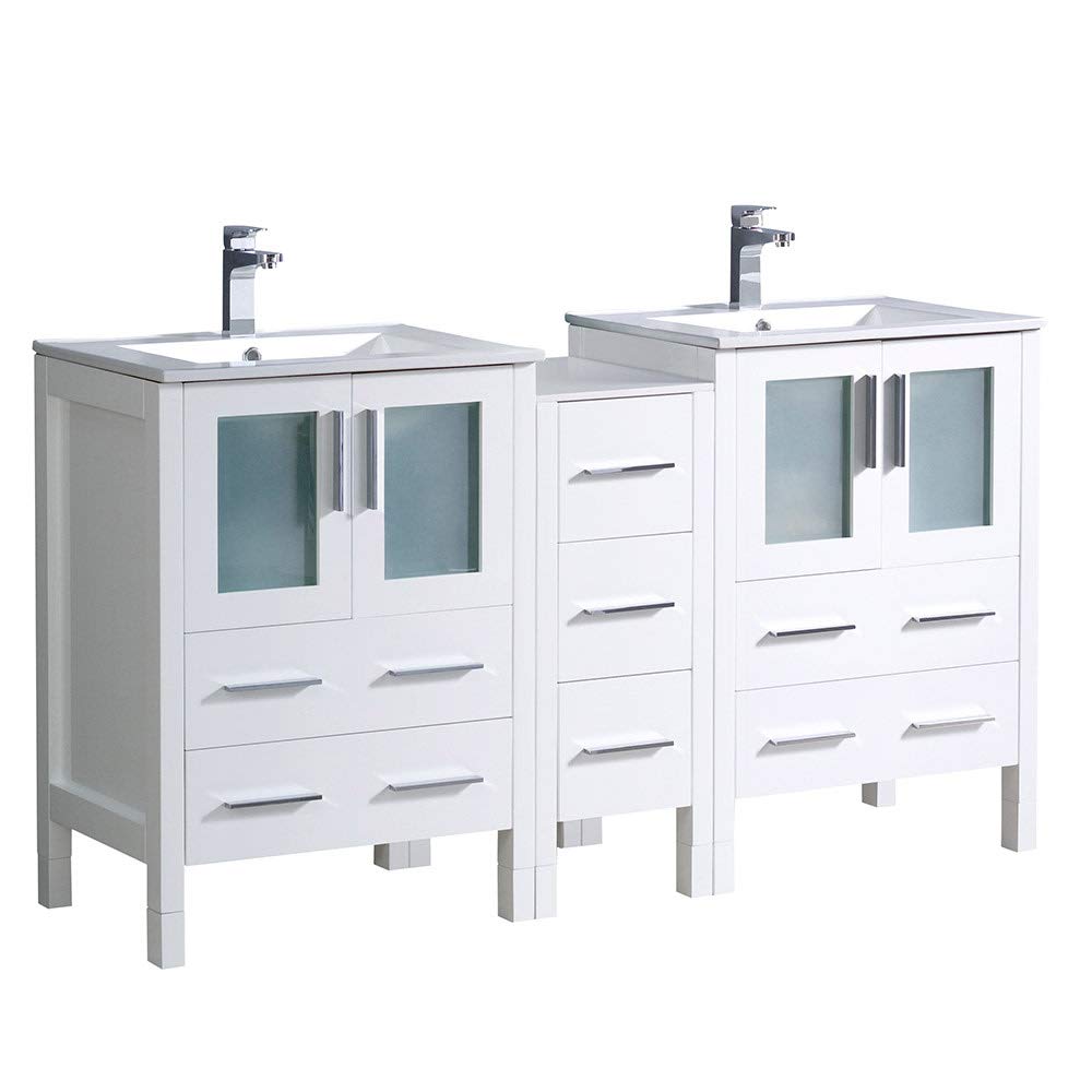 Fresca FCB62-241224WH-I Fresca Torino 60" White Modern Double Sink Bathroom Cabinets w/ Integrated Sinks