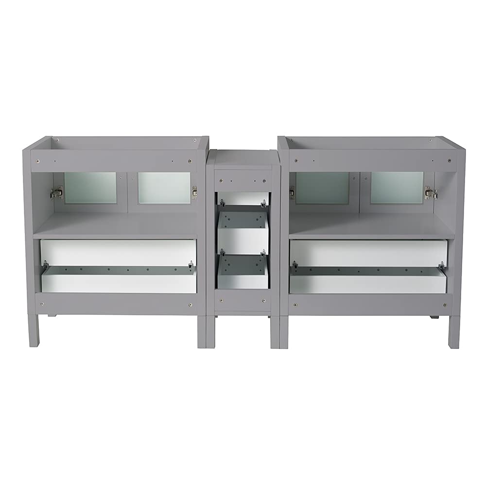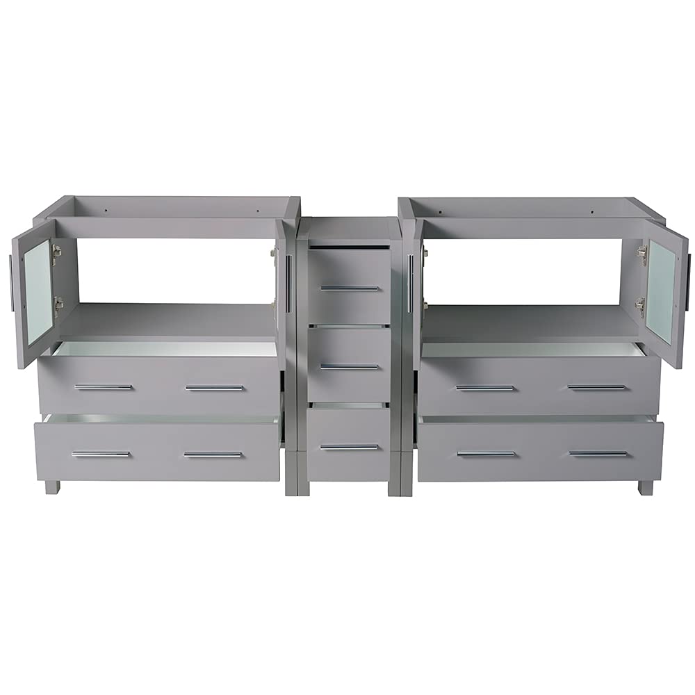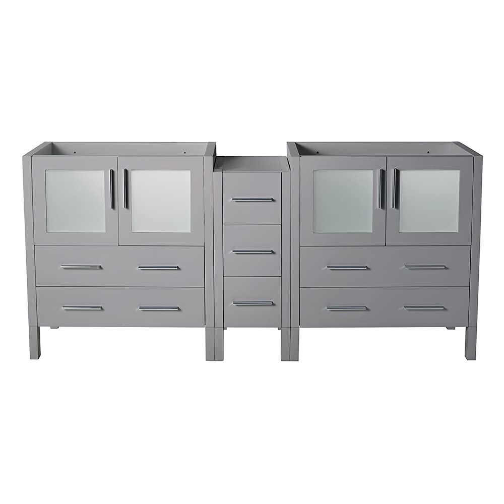 Add a fresh, contemporary touch to your bathroom with this elegant cabinet combination in a rich Espresso finish. With soft close drawers and chic doors with frosted glass panels, this distinctive bathroom cabinet configuration really catches the eye. Each ‘his and hers’ unit opens to reveal great storage space, along with wide drawers that are a generous size for holding bathroom essentials. There’s additional storage in the sleek central cabinet to keep daily needs within reach. The polished chrome pulls are included, adding the perfect finishing touch. Available in the rich finishes of Espresso, Gray Oak, Light Oak or White, the Fresca Torino Modern Bathroom Cabinets are designed to add elegance to any décor. These cabinets measure 72” in width and are available in varies sizes and configurations.