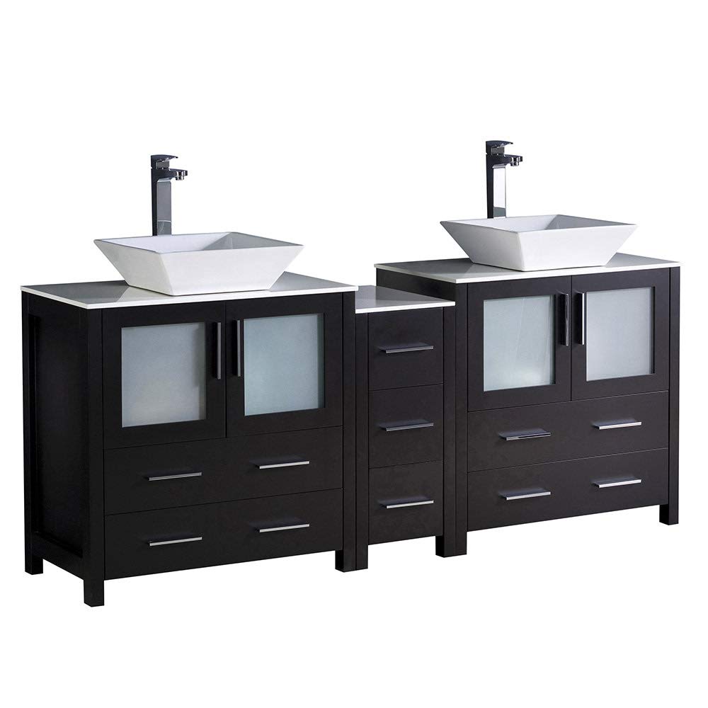 Fresca FCB62-301230ES-CWH-V Fresca Torino 72" Espresso Modern Double Sink Bathroom Cabinets w/ Tops & Vessel Sinks