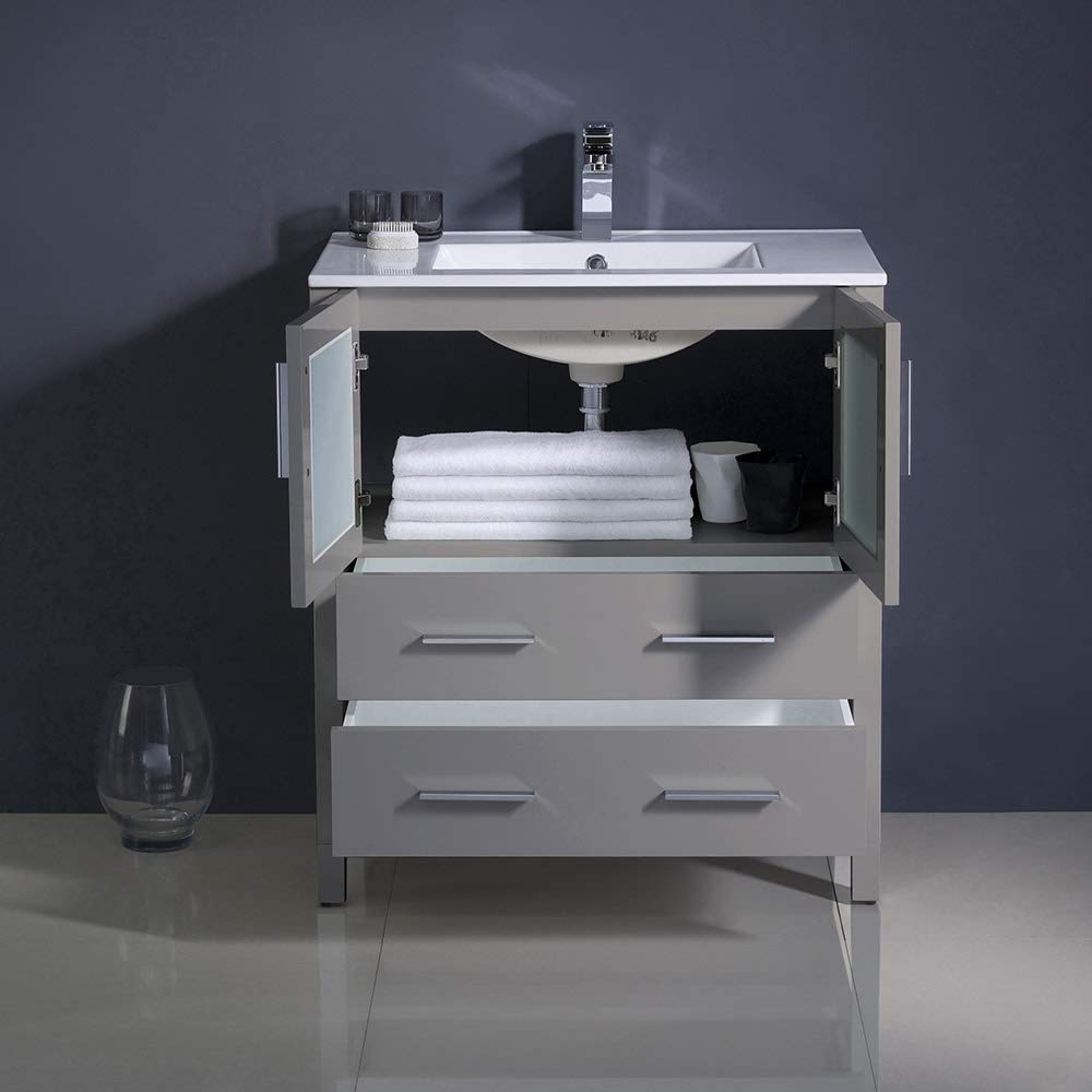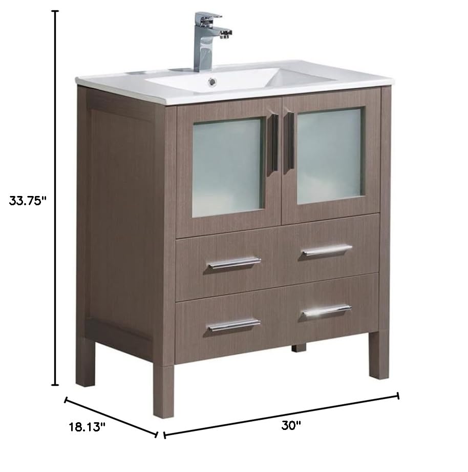 Fresca FCB6230GO-I Fresca Torino 30" Gray Oak Modern Bathroom Cabinet w/ Integrated Sink