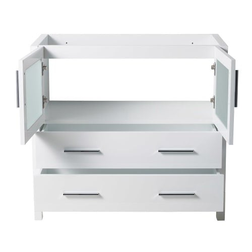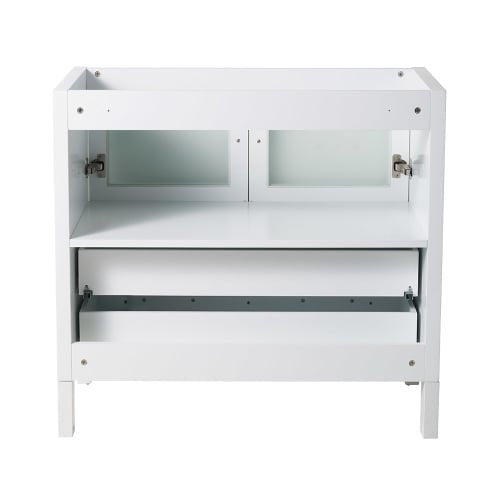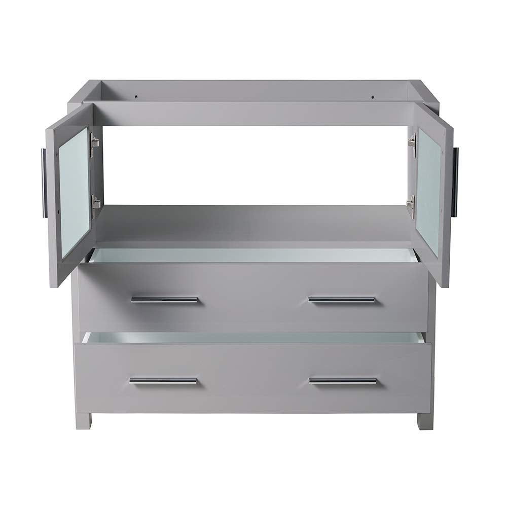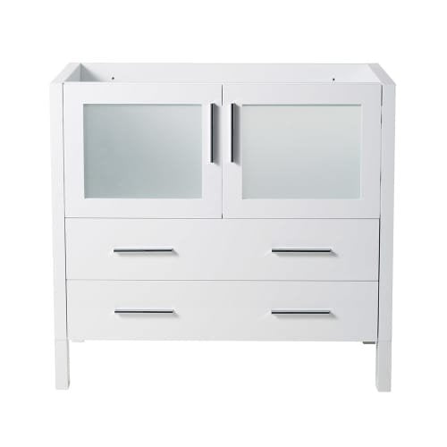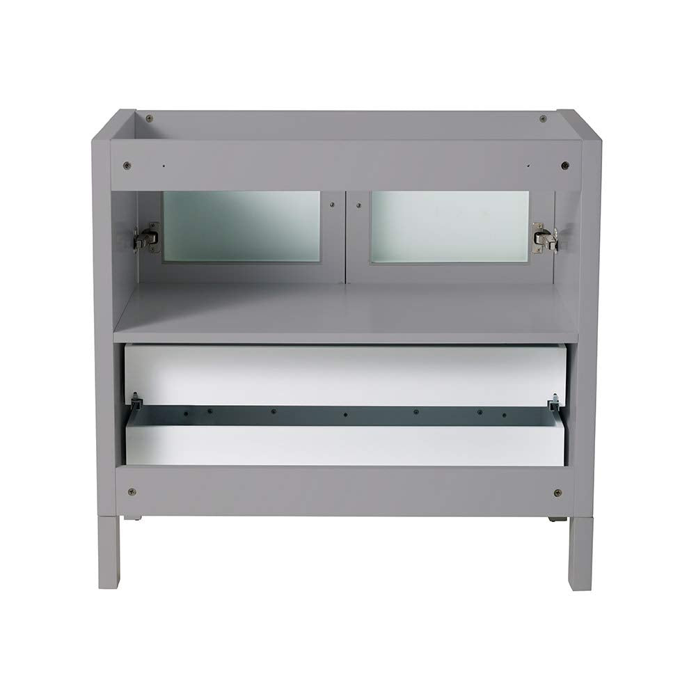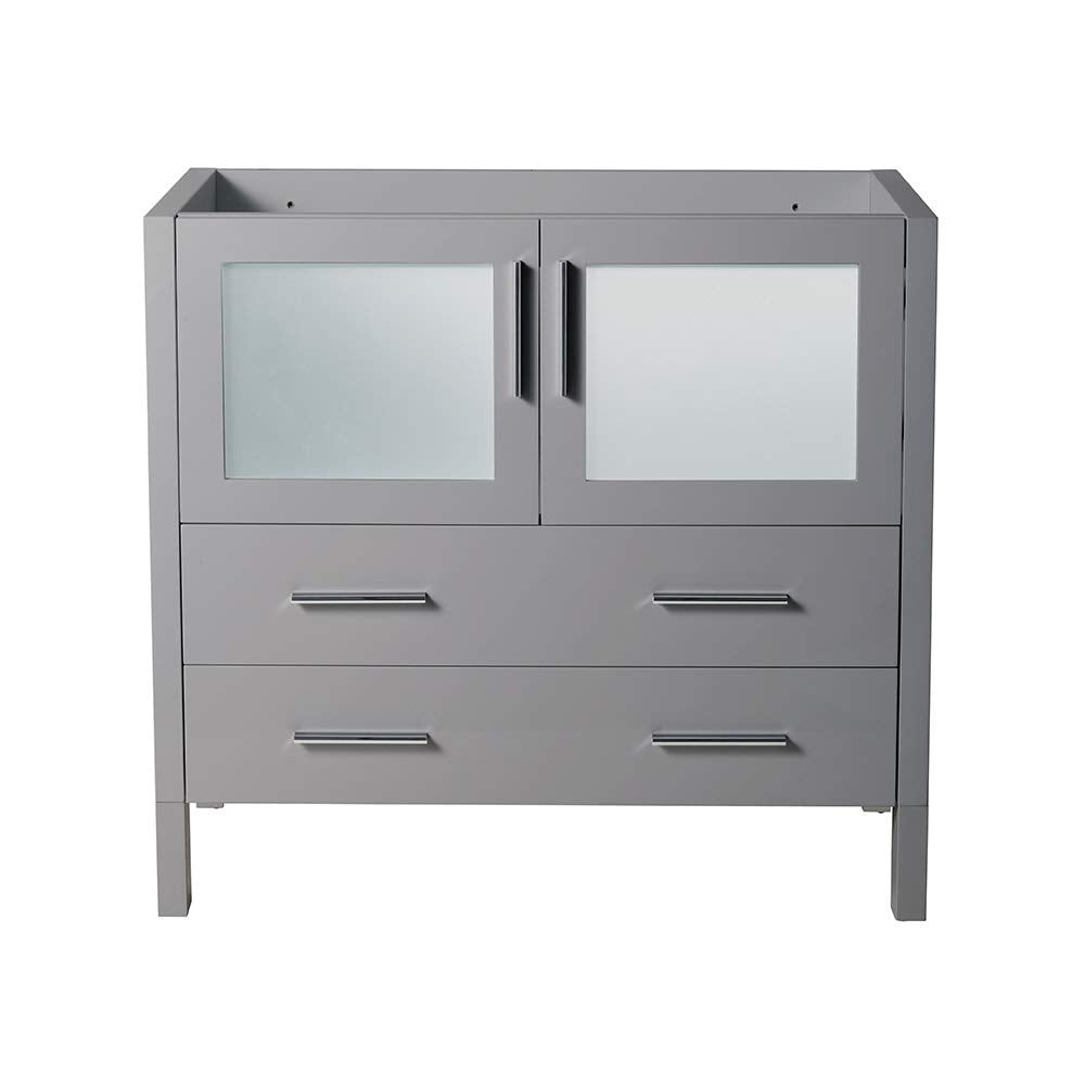 Add a fresh, contemporary touch to your bathroom with this elegant cabinet in a lovely Gray Oak finish. With two soft close drawers and chic doors with frosted glass panels, this stylish bathroom cabinet features clean lines and a smart design. The doors open to reveal great under-the-sink storage space while the drawers are a generous size for holding bathroom essentials. The polished chrome pulls are included, adding the perfect finishing touch. Available in the rich finishes of Espresso, Gray Oak, Light Oak or White, the Fresca Torino Modern Bathroom Cabinet adds elegance to any décor. This particular cabinet is designed to accommodate a counter top that measures 36 in width. It is also available in sizes that can accommodate counter tops measuring 24 and 30.