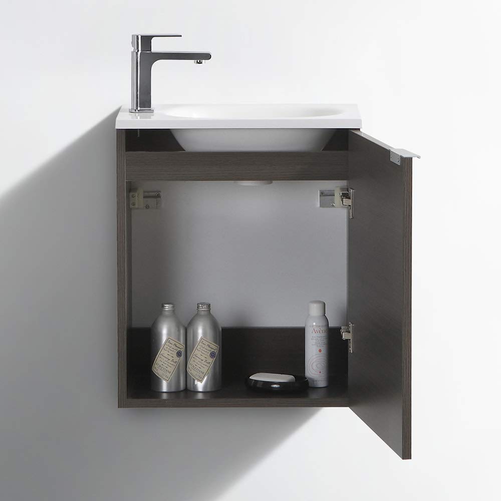 The Fresca Valencia Gray Oak Wall Hung Modern Bathroom Vanity adds modern elegance to any bathroom. The sleek vanity offers ample storage with a soft-closing door and a concealed aluminum handle. The white acrylic-resin countertop/sink has smooth lines and an oval basin. It is equipped with an overflow and side-mounted single hole faucet mount, ready for the faucet of your choice (sold separately). This lovely vanity is available in multiple colors and makes a stylish statement in any home. It includes installation hardware.