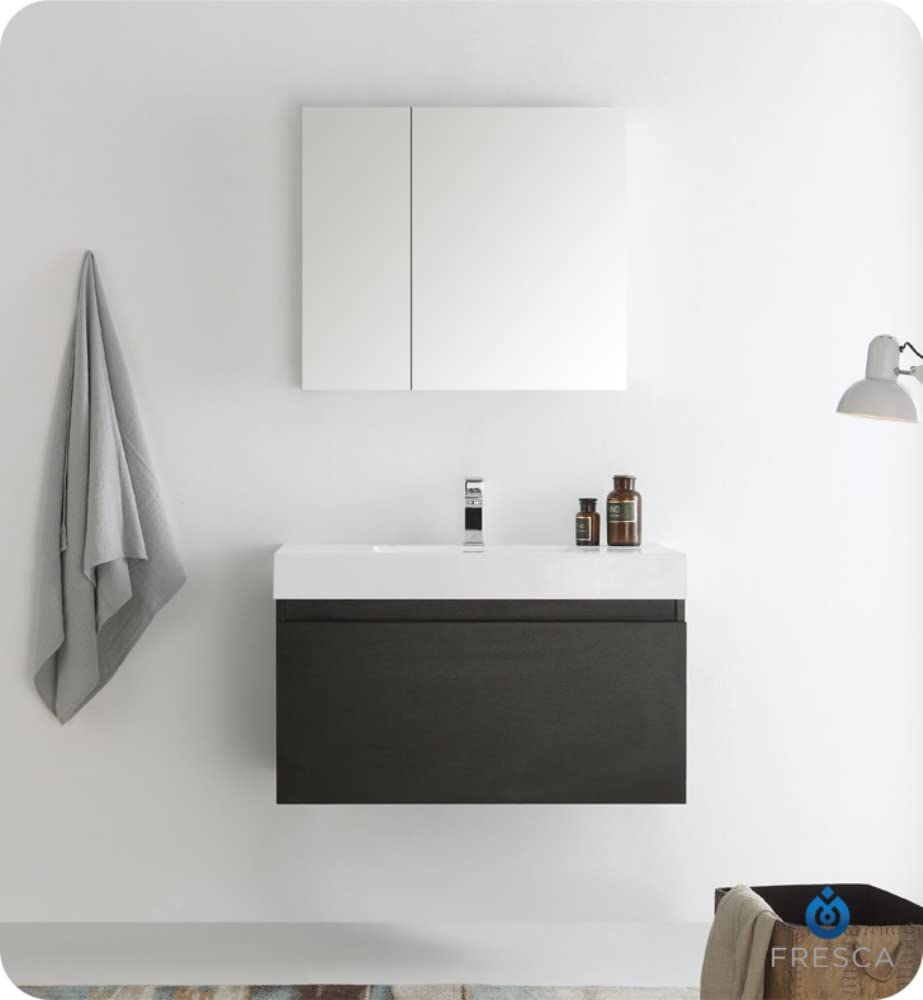 Fresca FCB8008BW Fresca Mezzo 36" Black Wall Hung Modern Bathroom Cabinet