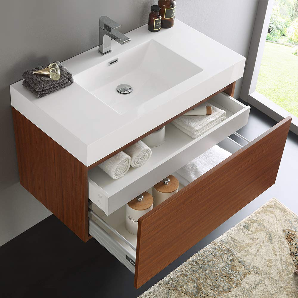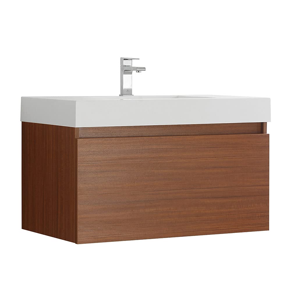 Fresca FCB8008TK-I Fresca Mezzo 36" Teak Wall Hung Modern Bathroom Cabinet w/ Integrated Sink