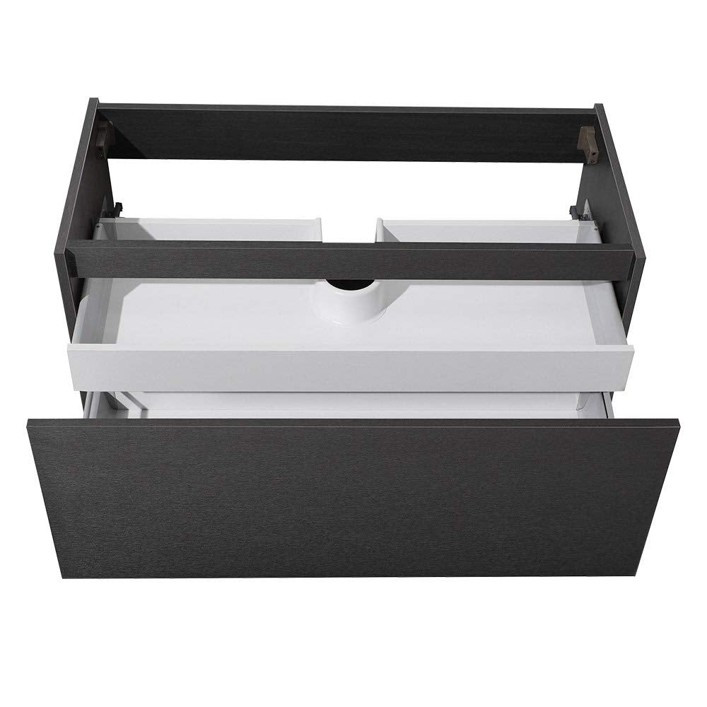 The wall mounted Fresca Mezzo Modern Bathroom Cabinet is stylish and contemporary. It features a spacious, soft closing drawer with an innovative, nested drawer storage system inside. This rectangular floating cabinet measures 39 in width. With its rich Teak finish, it would add warmth and character to any bathroom. The Fresca Mezzo Modern Bathroom Cabinet is also available with a Black, Gray Oak or Glossy White finish.