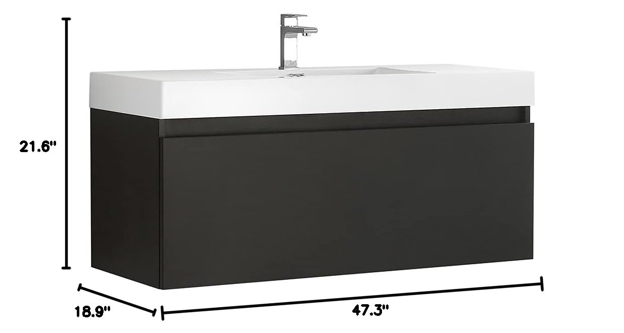 Fresca FCB8011BW-I Fresca Mezzo 48" Black Wall Hung Modern Bathroom Cabinet w/ Integrated Sink