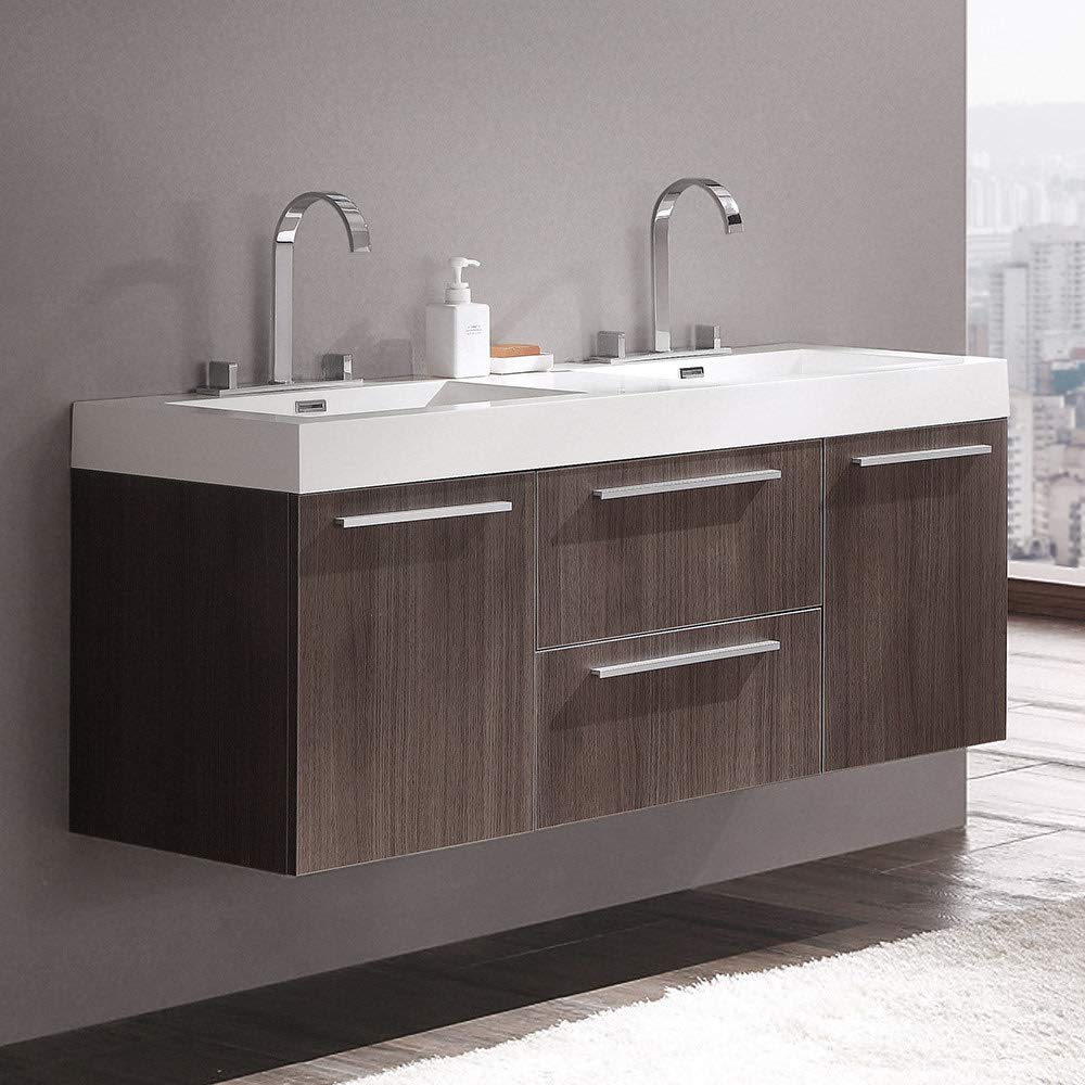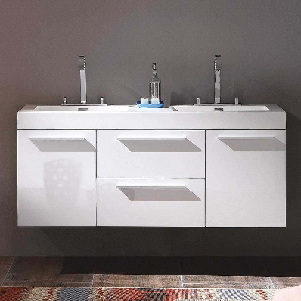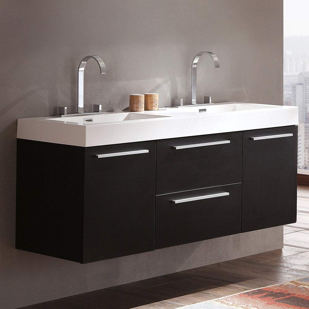 Fresca FCB8013BW-I Fresca Opulento 54" Black Modern Double Sink Bathroom Cabinet w/ Integrated Sinks