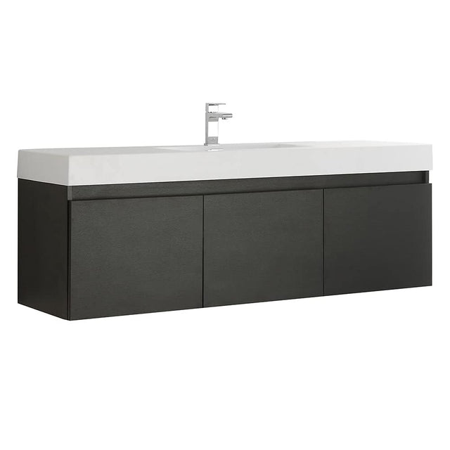 Fresca FCB8041BW-I Fresca Mezzo 60" Black Wall Hung Single Sink Modern Bathroom Cabinet w/ Integrated Sink