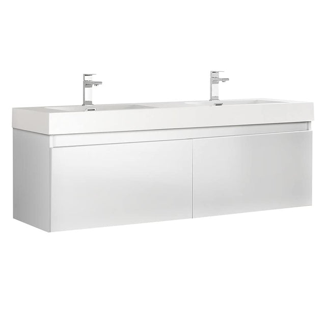 Fresca FCB8042WH-I Fresca Mezzo 60" White Wall Hung Double Sink Modern Bathroom Cabinet w/ Integrated Sink