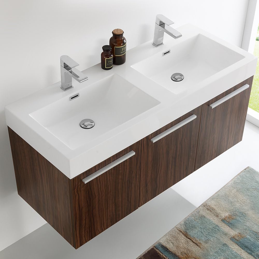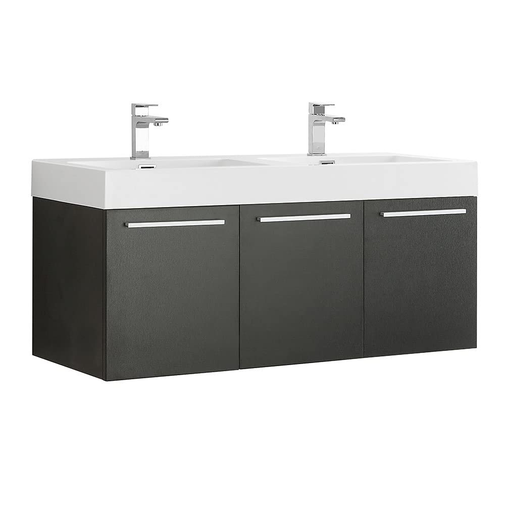 Fresca FCB8092BW-D Fresca Vista 48" Black Wall Hung Double Sink Modern Bathroom Cabinet