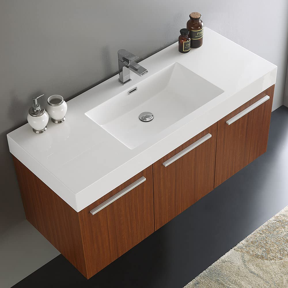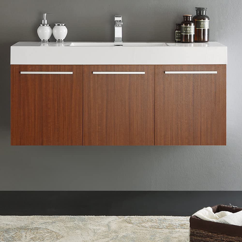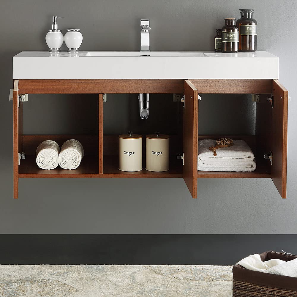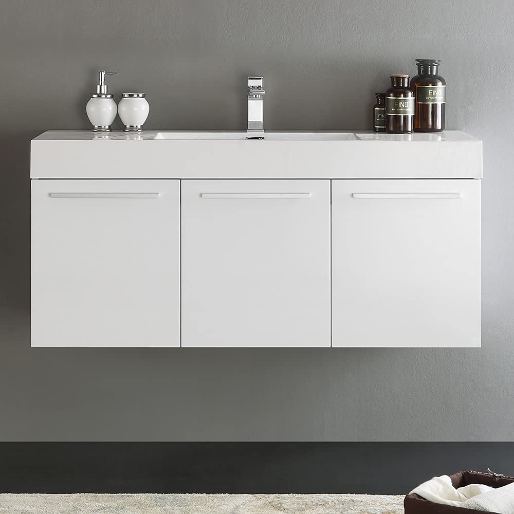 Fresca FCB8092WH-I Fresca Vista 48" White Wall Hung Modern Bathroom Cabinet w/ Integrated Sink