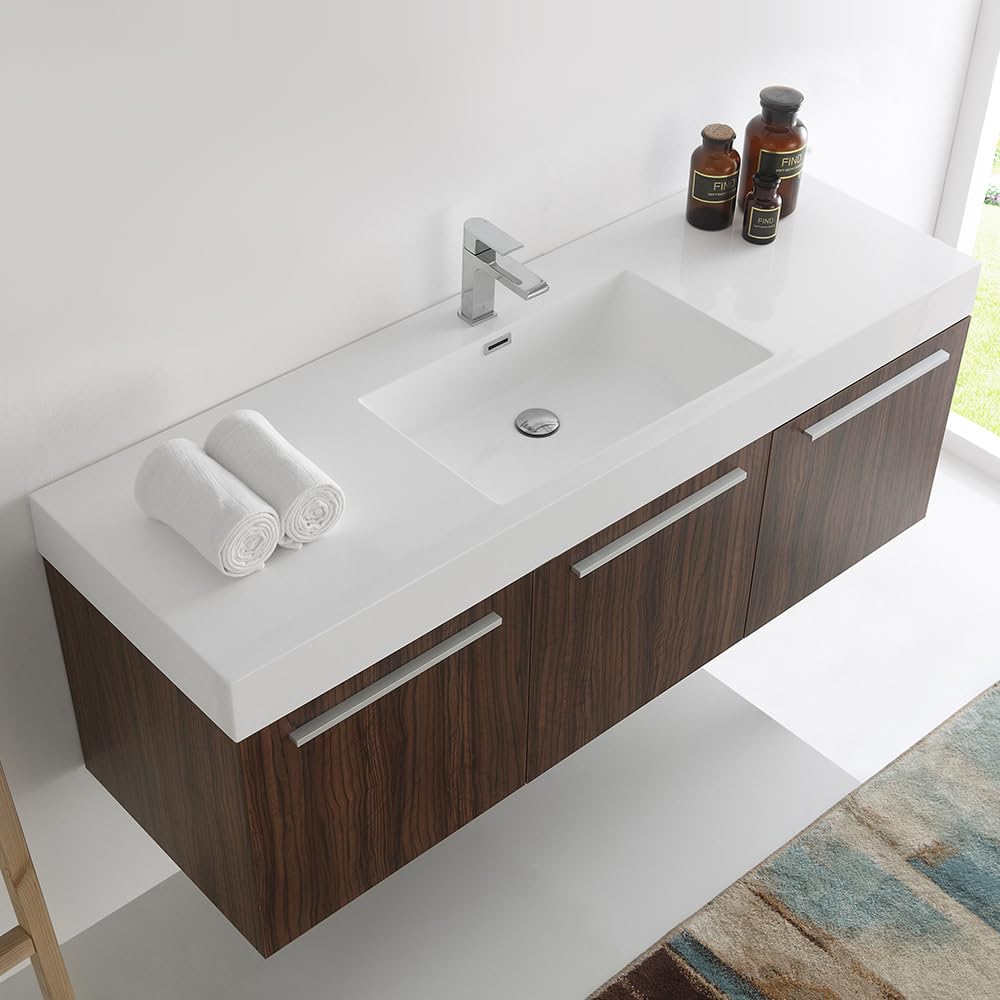 Fresca FCB8093BW-I Fresca Vista 60" Black Wall Hung Single Sink Modern Bathroom Cabinet w/ Integrated Sink