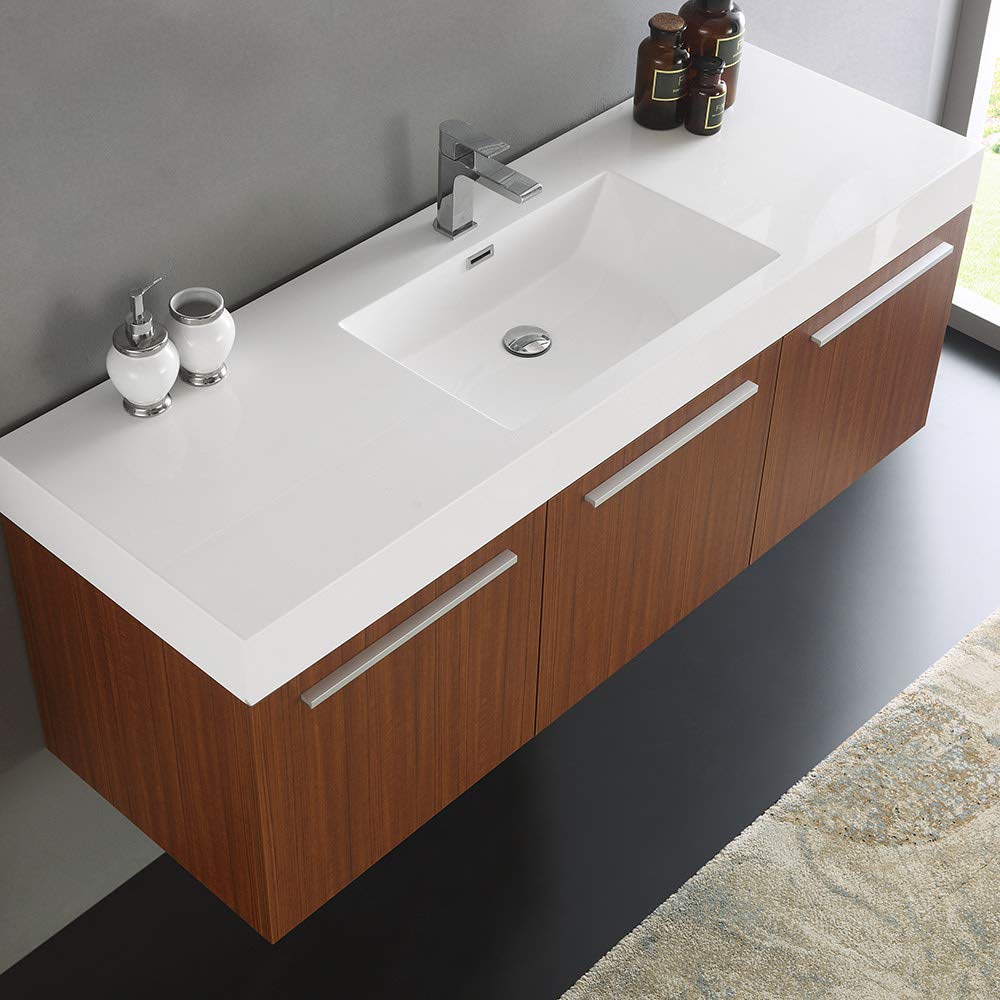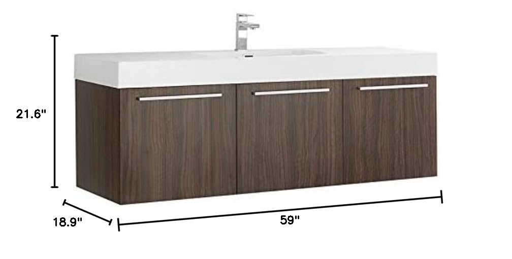 Fresca FCB8093GW-I Fresca Vista 60" Walnut Wall Hung Single Sink Modern Bathroom Cabinet w/ Integrated Sink