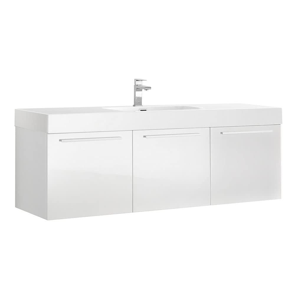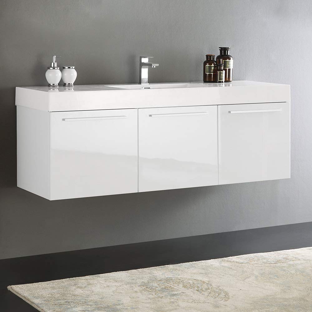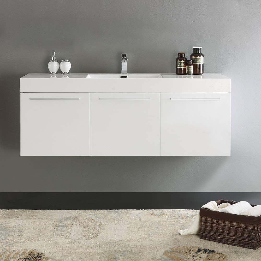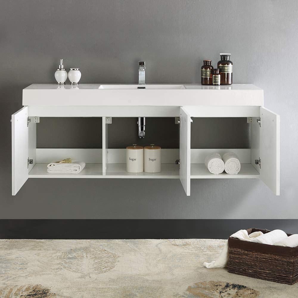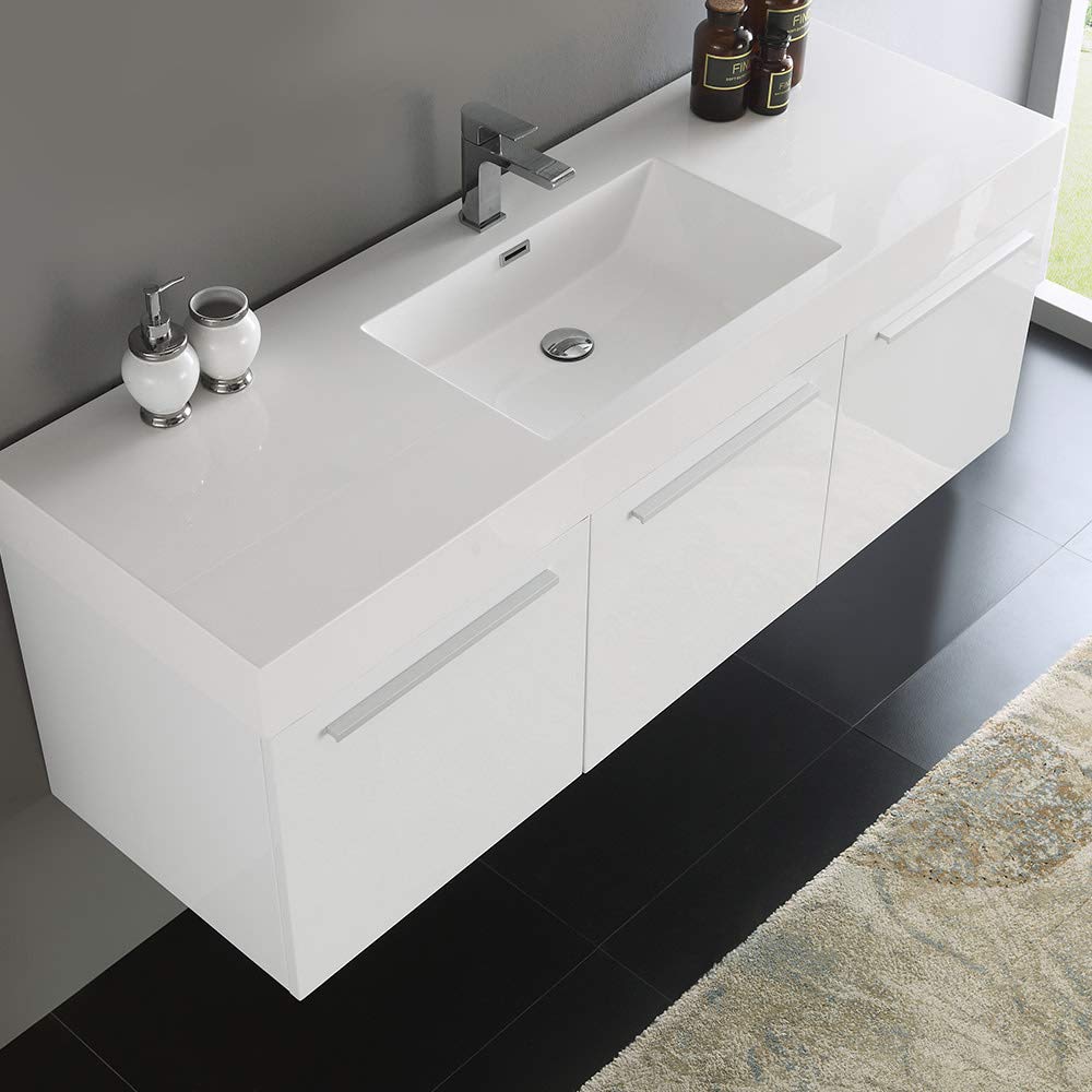 Fresca FCB8093WH-I Fresca Vista 60" White Wall Hung Single Sink Modern Bathroom Cabinet w/ Integrated Sink