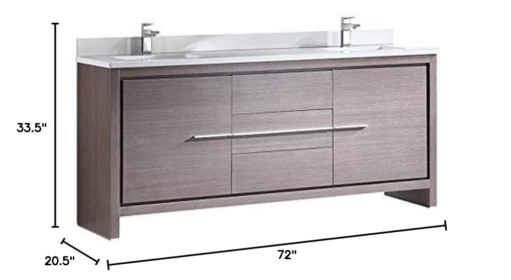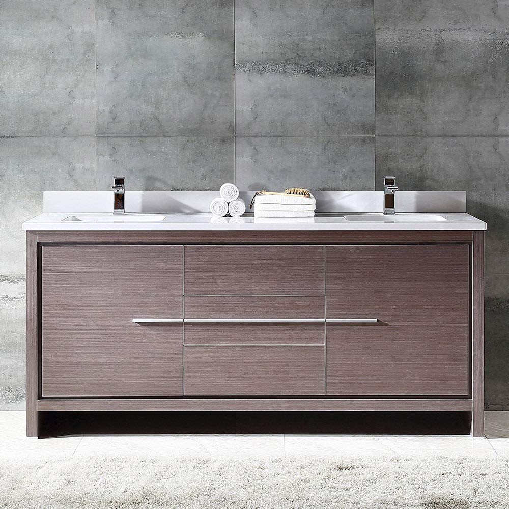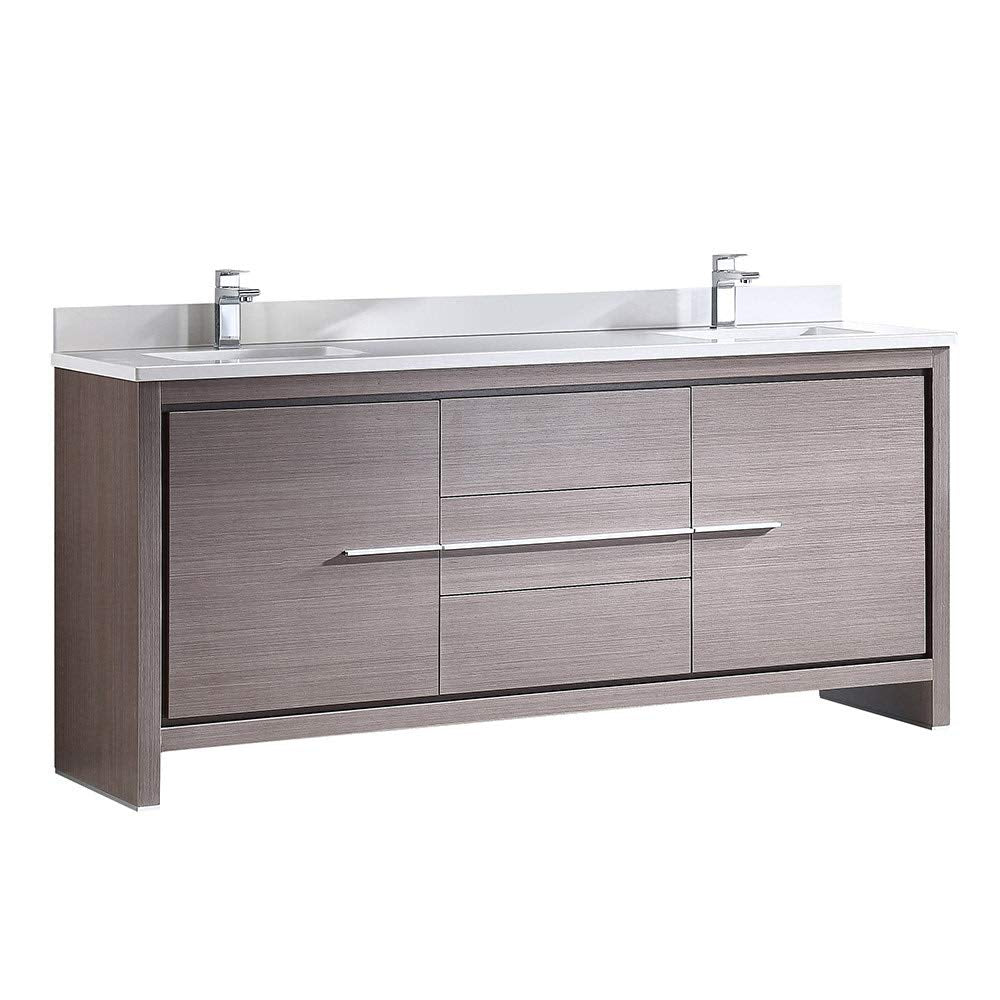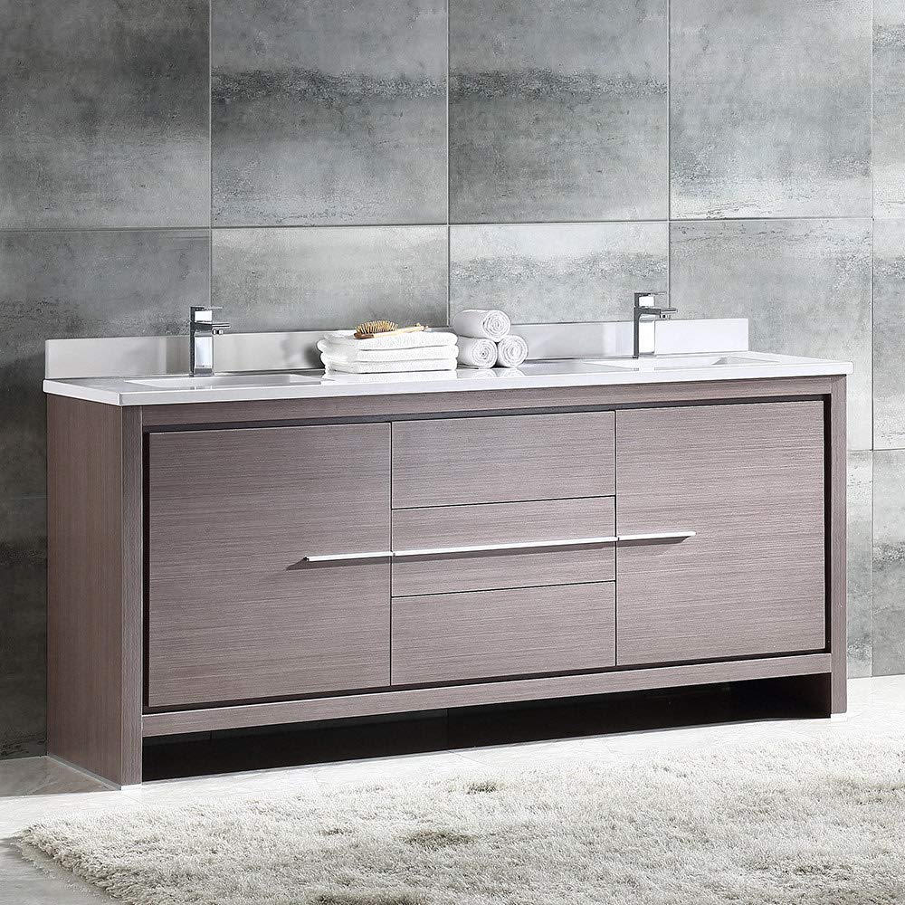 Fresca FCB8172GO-CWH-U Fresca Allier 72" Gray Oak Modern Double Sink Bathroom Cabinet w/ Top & Sinks