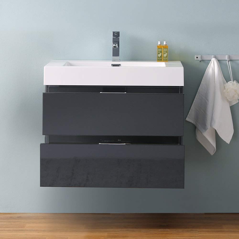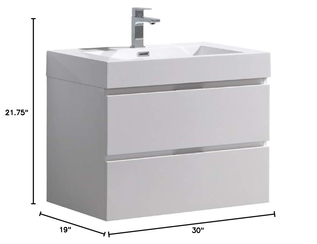 Fresca FCB8330WH-I Fresca Valencia 30" Glossy White Wall Hung Modern Bathroom Vanity
