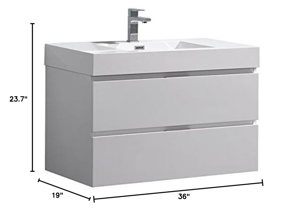 Fresca FCB8336WH-I Fresca Valencia 36" Glossy White Wall Hung Modern Bathroom Vanity