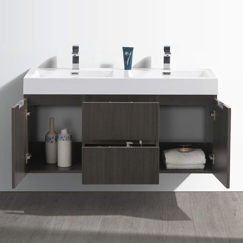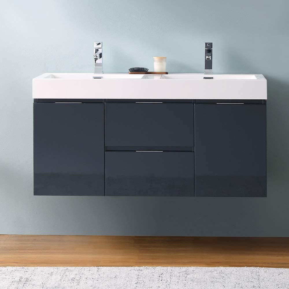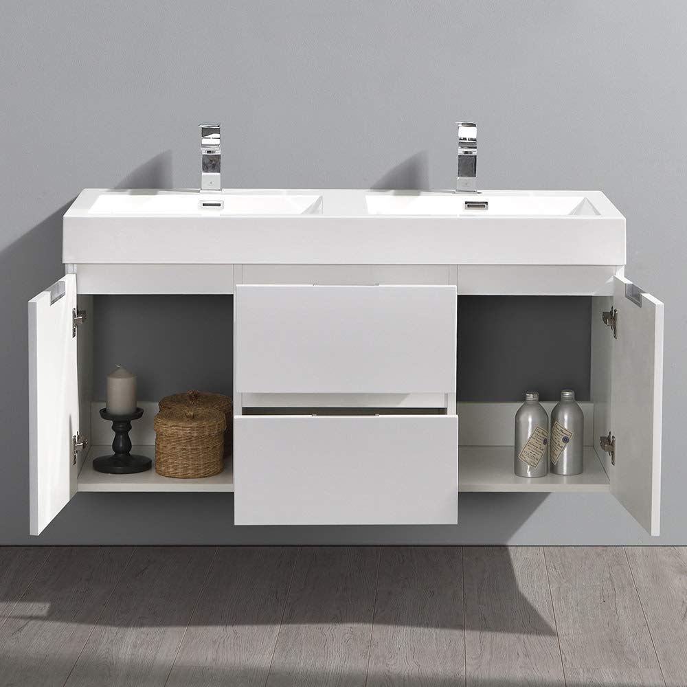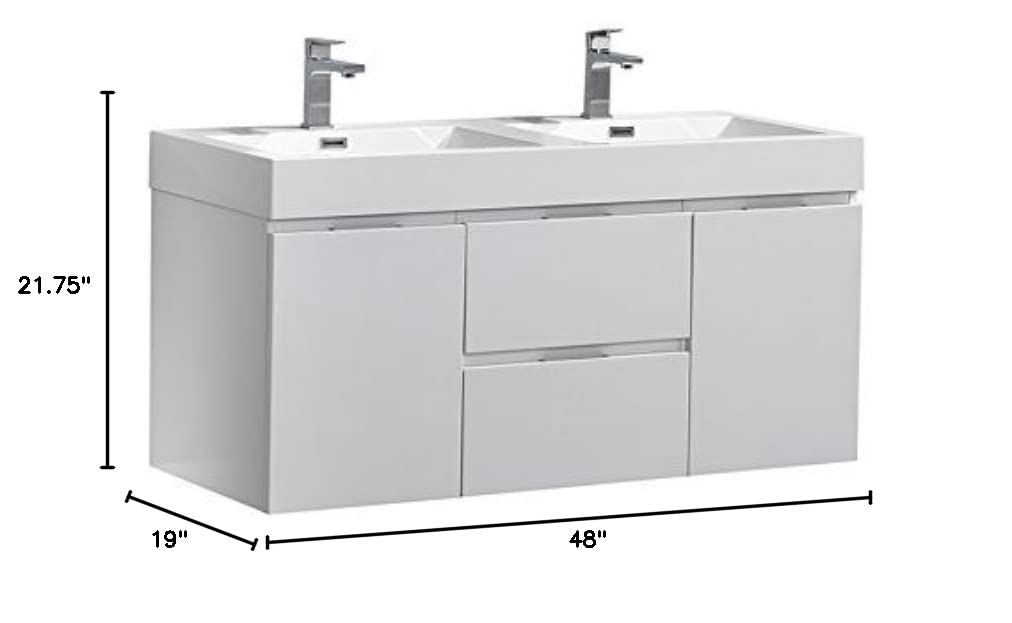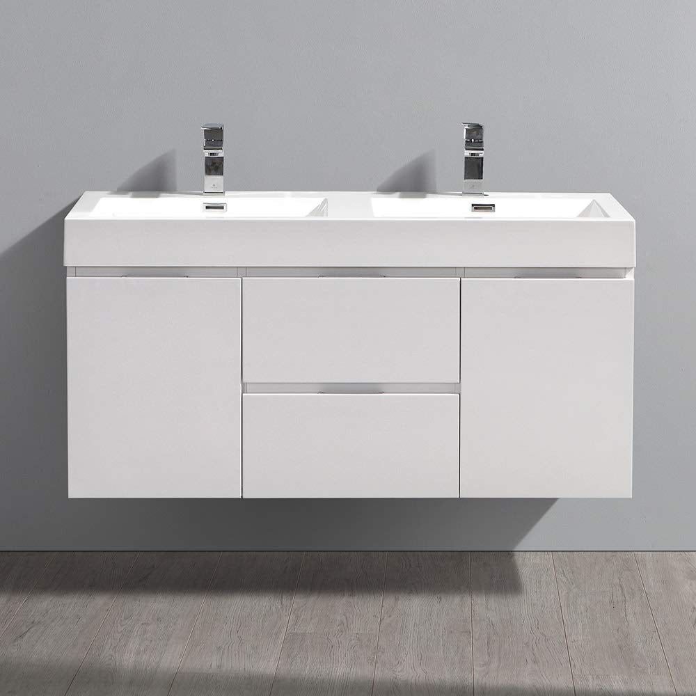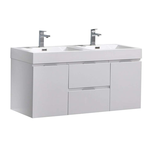 Fresca FCB8348WH-D-I Fresca Valencia 48" Glossy White Wall Hung Double Sink Modern Bathroom Vanity