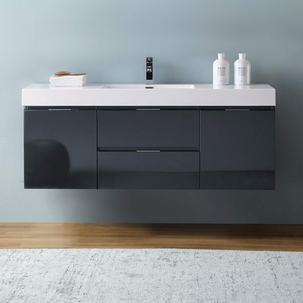 Fresca FCB8360GG-I Fresca Valencia 60" Dark Slate Gray Wall Hung Modern Bathroom Vanity