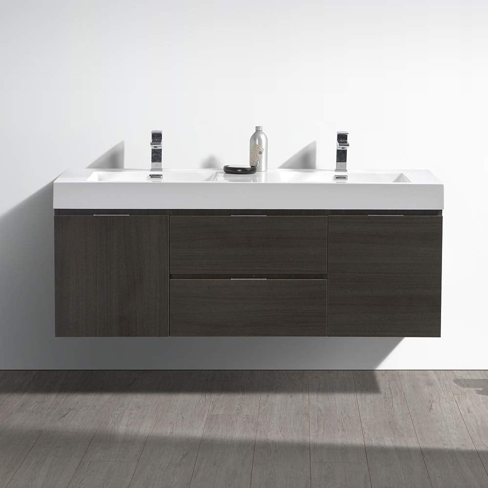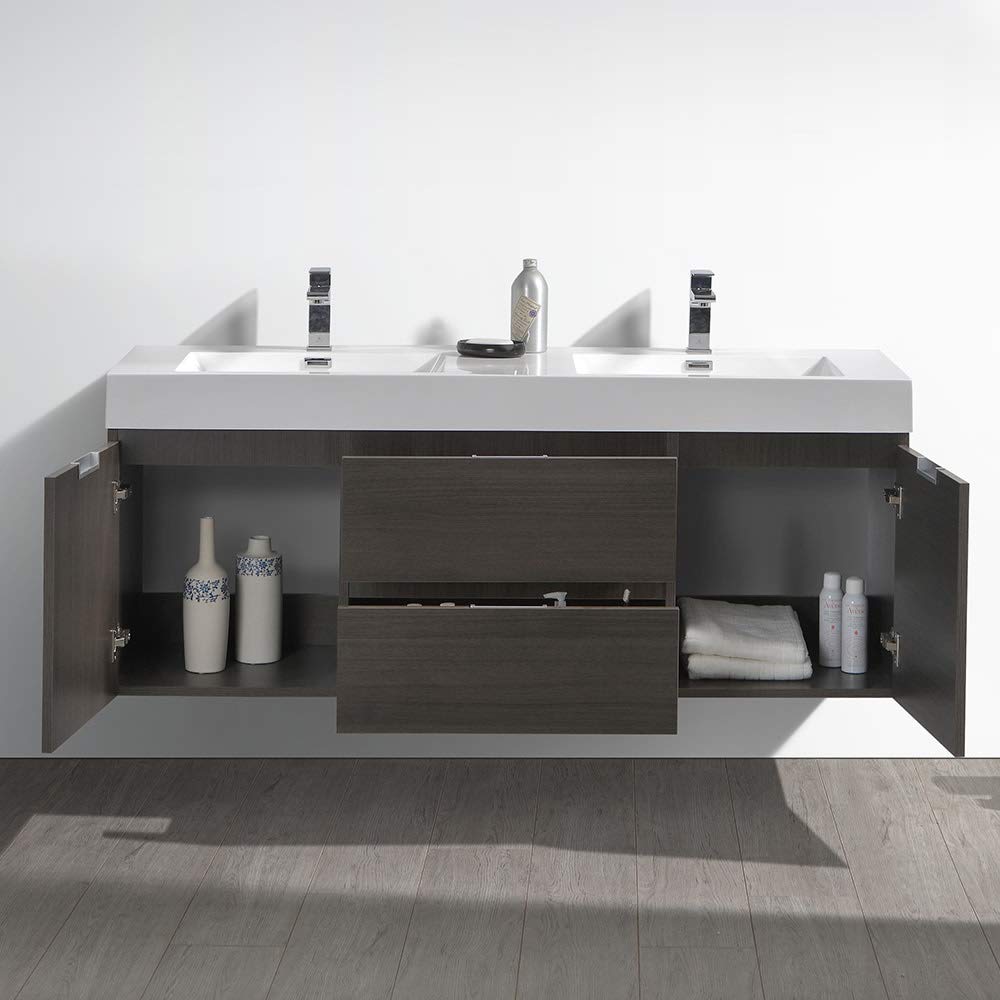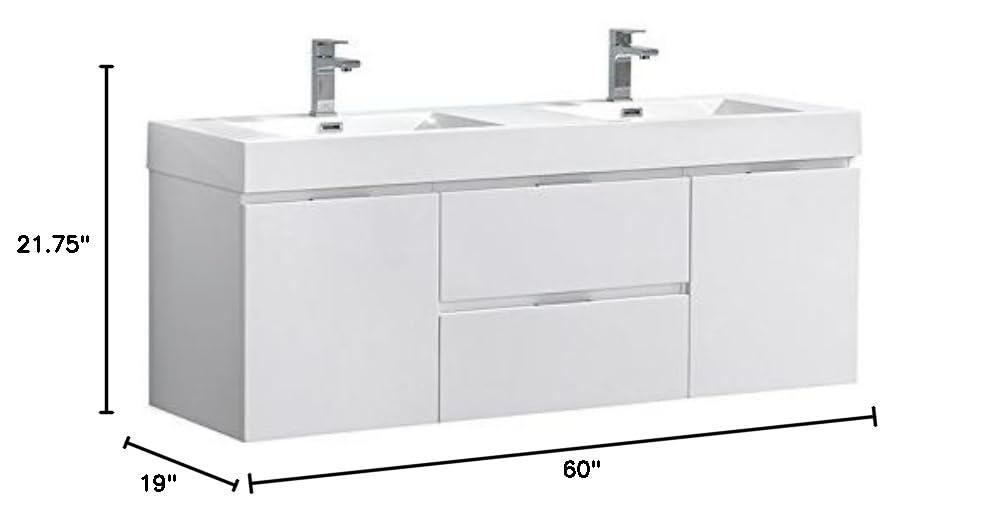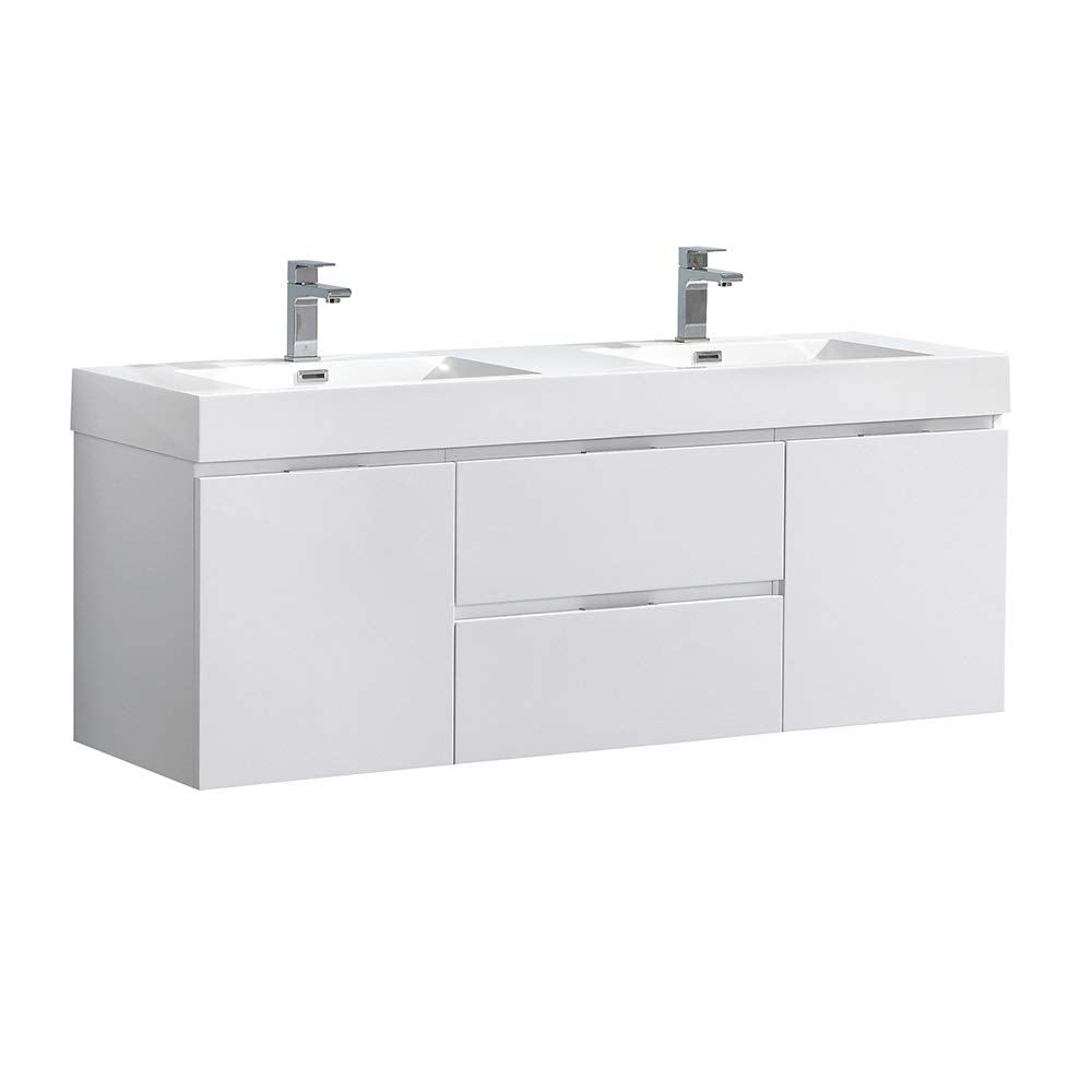 Fresca FCB8360WH-D-I Fresca Valencia 60" Glossy White Wall Hung Double Sink Modern Bathroom Vanity
